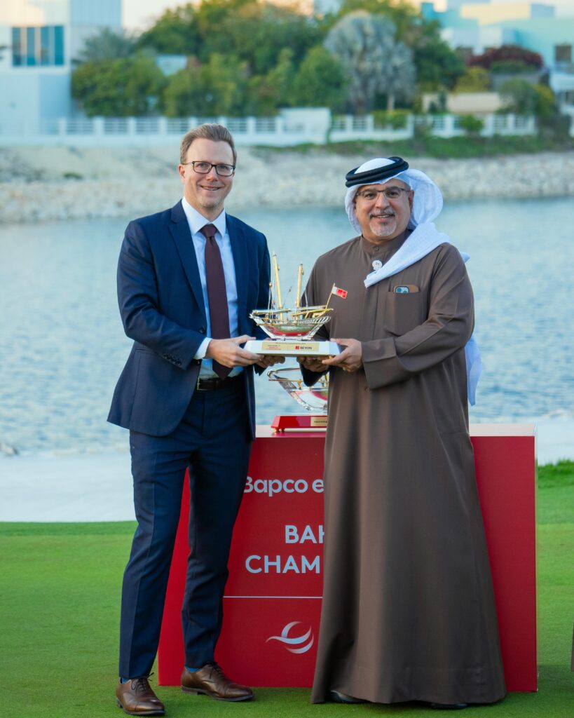 His Royal Highness also presented tokens of appreciation to representatives of the Bahrain Tourism and Exhibitions Authority, Bahrain Mumtalakat Holding Company (Mumtalakat), the Royal Golf Club, Bapco Energies Group, DP World Tour, the National Bank of Bahrain, Beyon, and the Royal Bahrain Hospital, for their outstanding contributions to the championship’s success.