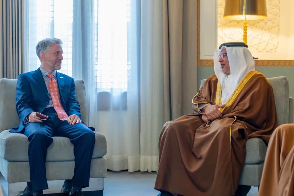 His Royal Highness Prince Salman bin Hamad Al Khalifa, the Crown Prince and Prime Minister, today met with His Excellency Alastair Long, the United Kingdom’s Ambassador to the Kingdom of Bahrain, at Riffa Palace.