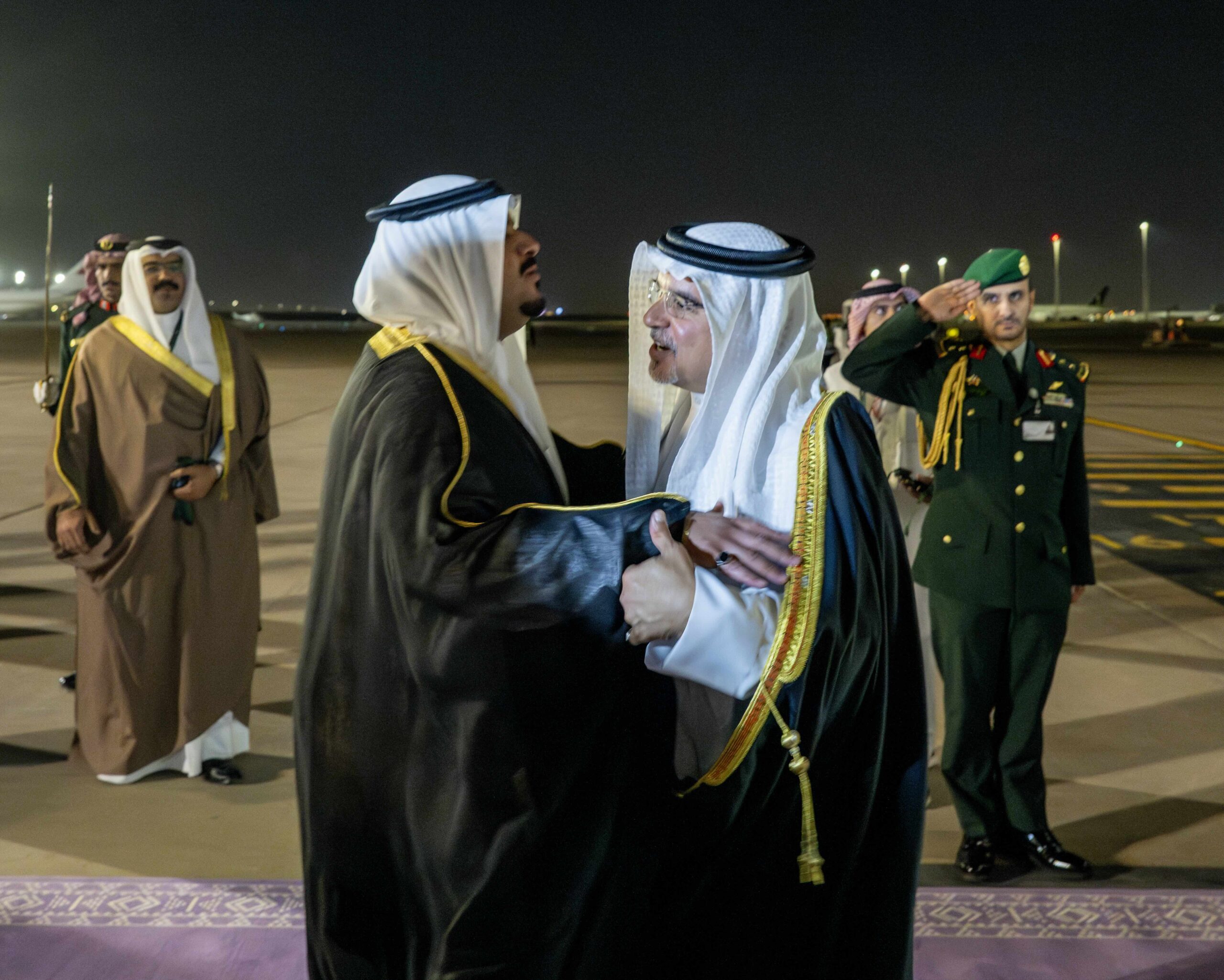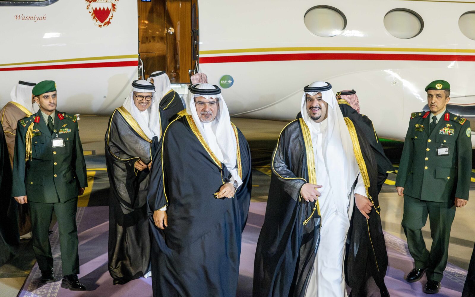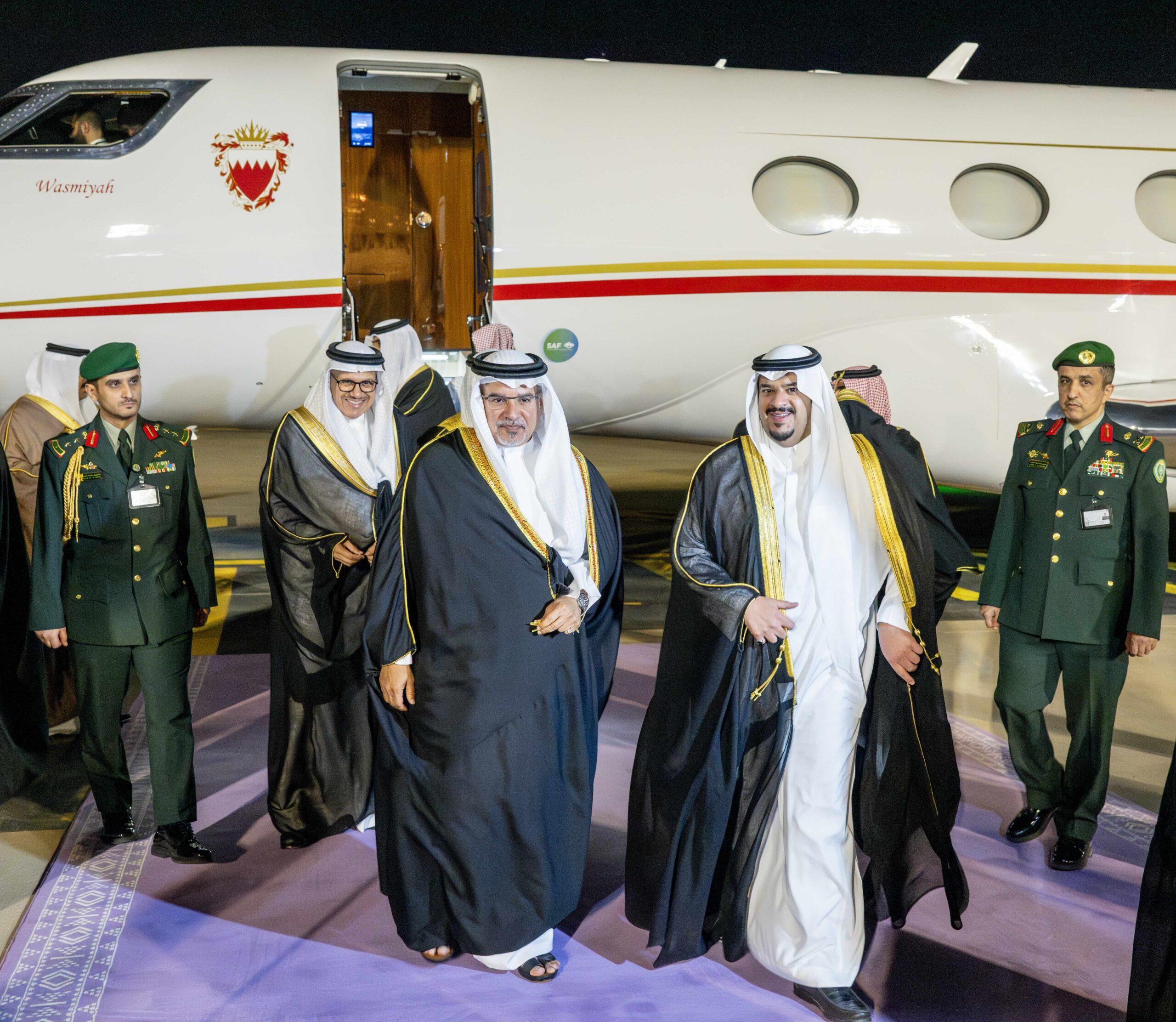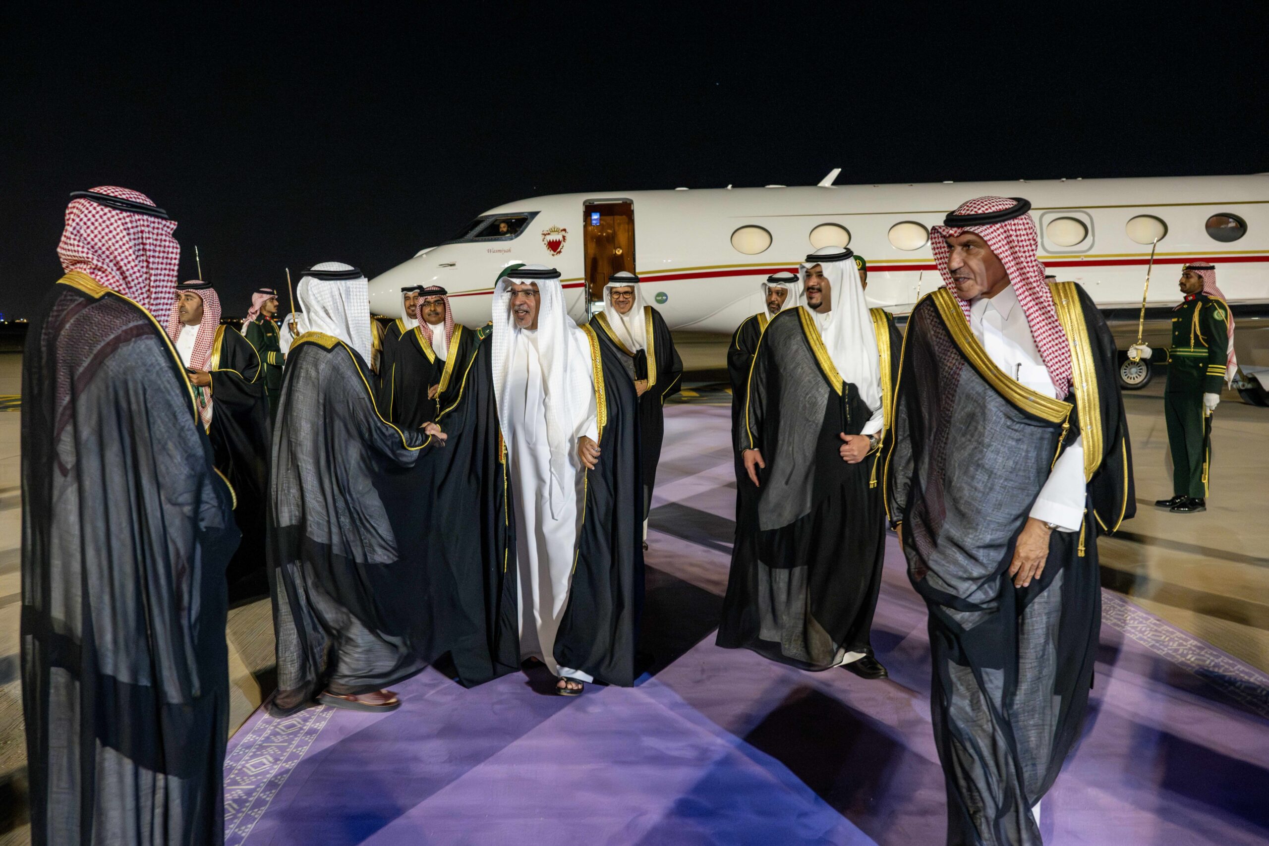 Upon arrival, His Royal Highness was received by His Royal Highness Prince Mohammed bin Abdulrahman bin Abdulaziz Al Saud, Deputy Governor of Riyadh; His Excellency Naif bin Bandar Al-Sudairi, Ambassador of the Kingdom of Saudi Arabia to the Kingdom of Bahrain; Shaikh Ali bin Abdulrahman bin Ali Al Khalifa, Ambassador of Bahrain to Saudi Arabia, and several other senior officials.