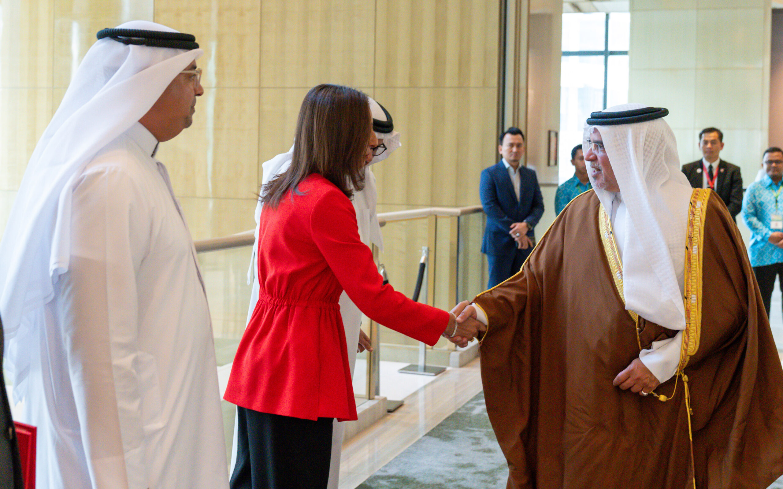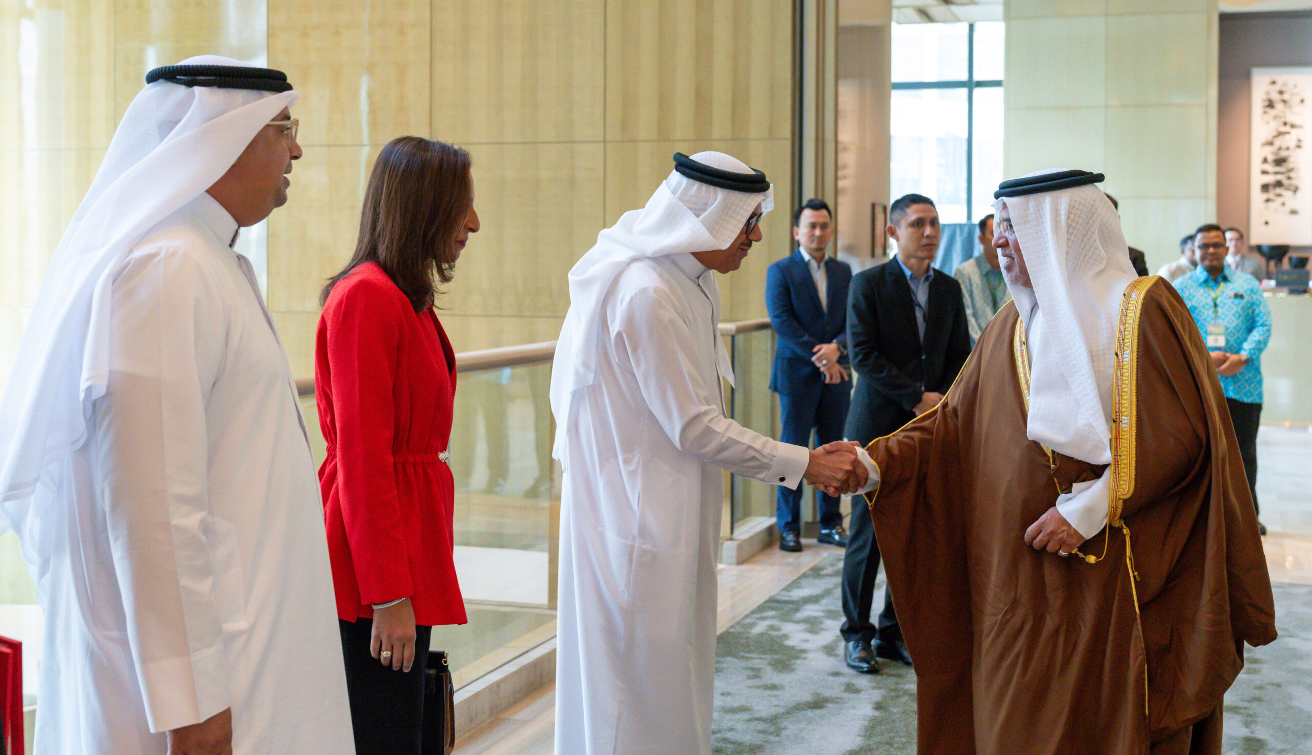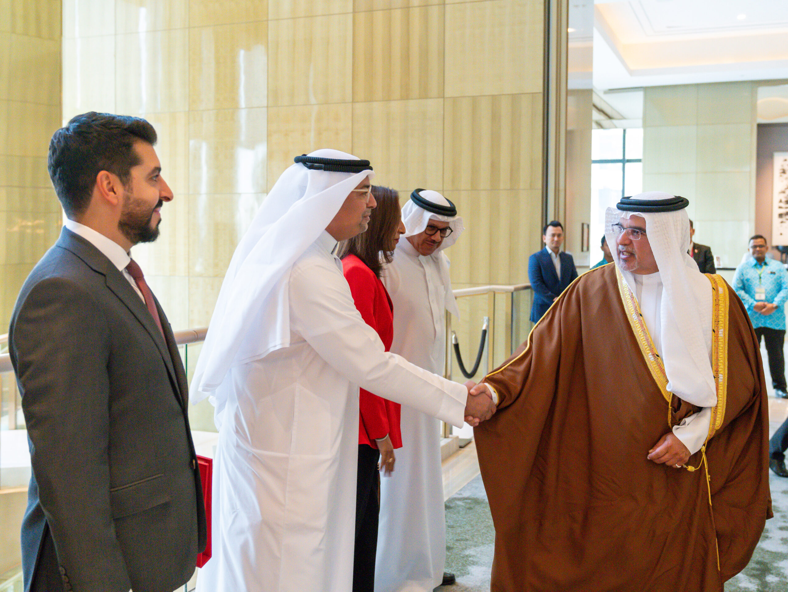 His Royal Highness was accompanied by His Excellency Dr Abdullatif bin Rashid Al Zayani, the Minister of Foreign Affairs, His Excellency Shaikh Salman bin Khalifa Al Khalifa, the Minister of Finance and National Economy, Her Excellency Noor bint Ali Al-Khulaif, the Minister of Sustainable Development, His Highness Shaikh Abdullah bin Isa Al Khalifa, the Private Secretary to the Crown Prince, His Excellency Colonel Shaikh Ahmed bin Isa Al Khalifa, the escort officer to HRH the Crown Prince, along with several senior officials.