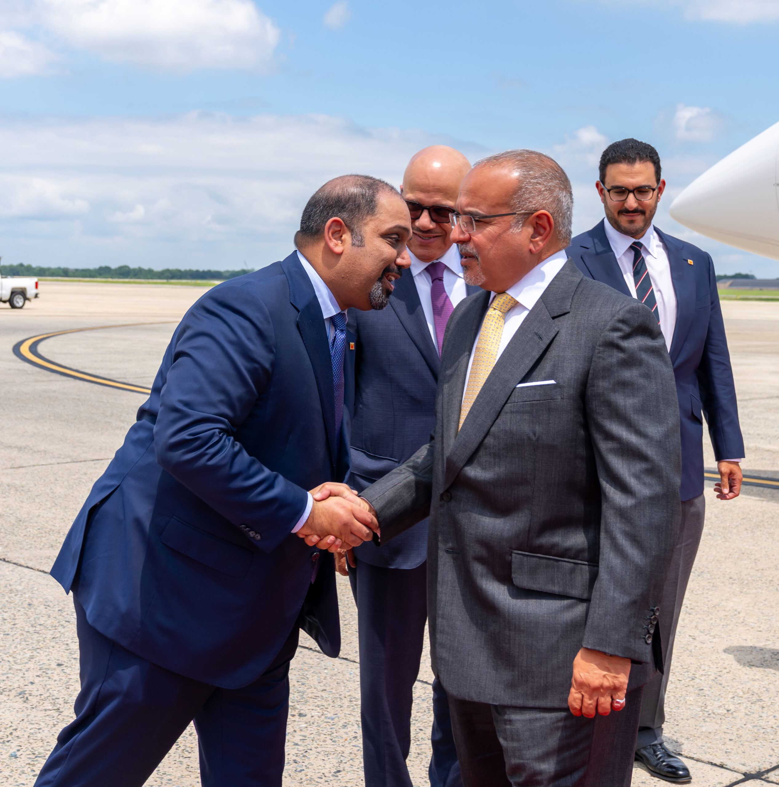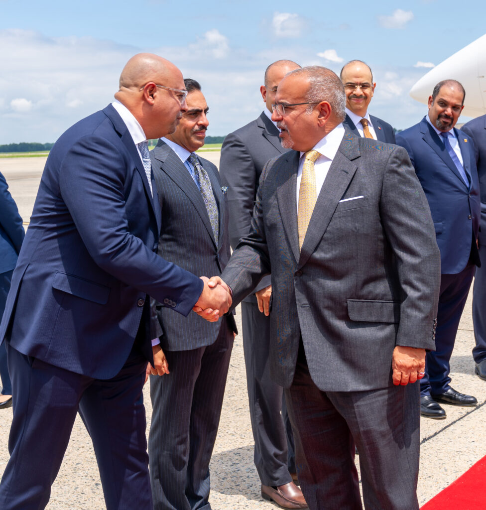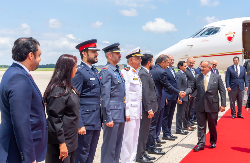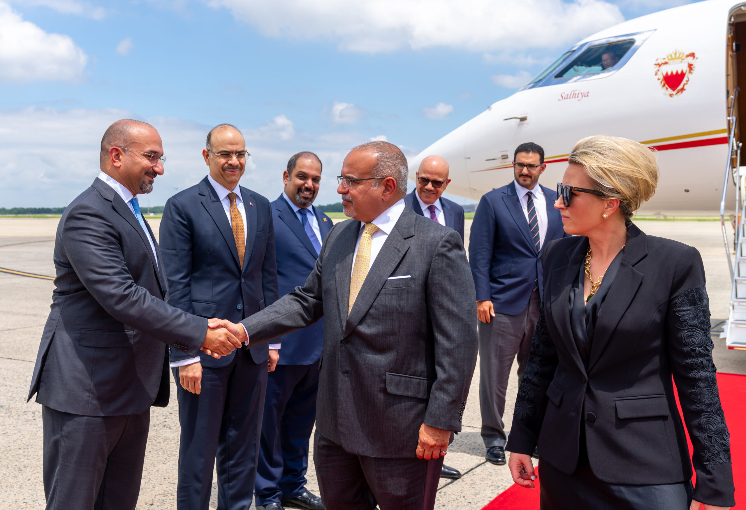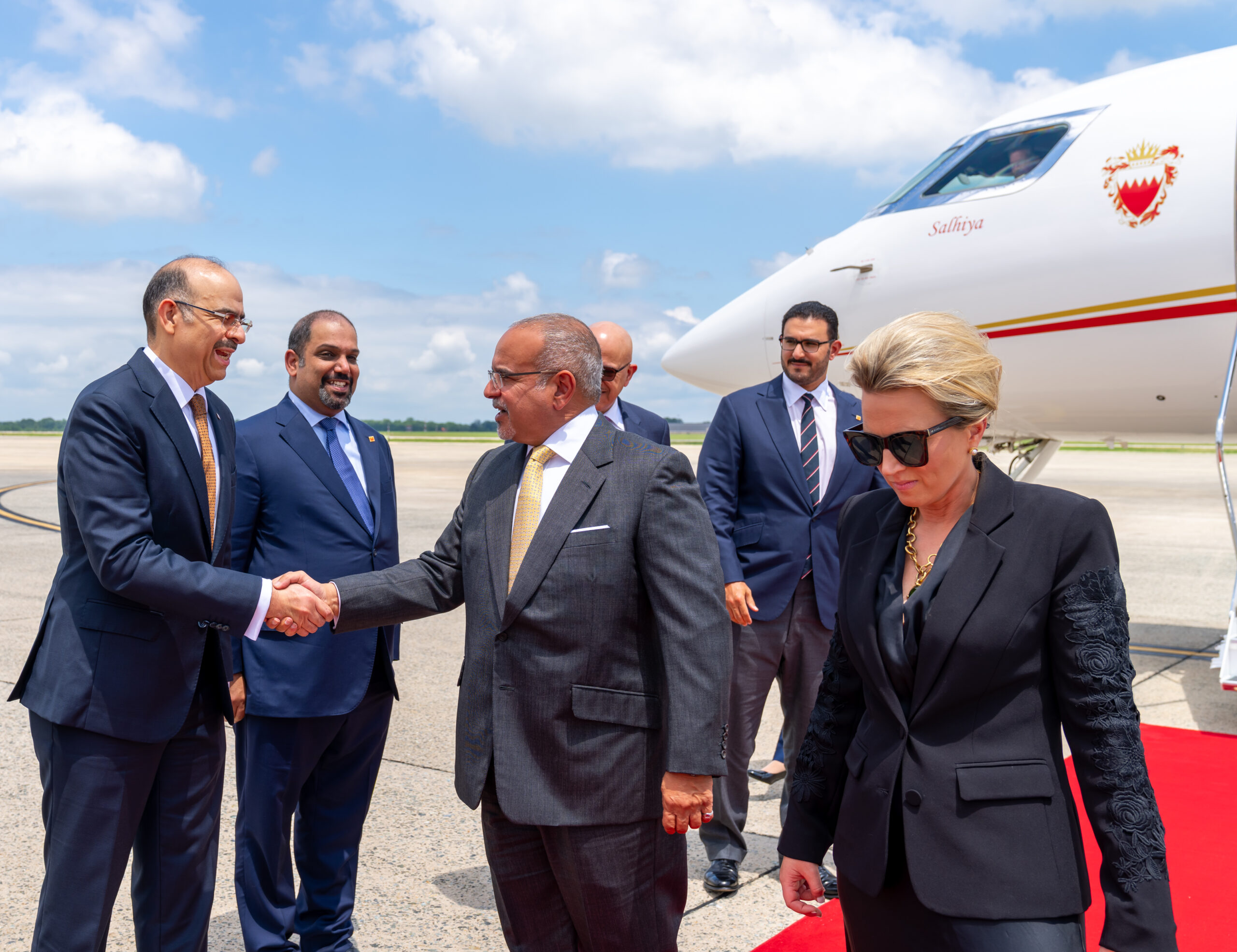 Upon arrival, His Royal Highness the Crown Prince and Prime Minister was received by His Highness Shaikh Isa bin Salman bin Hamad Al Khalifa, the Minister of the Prime Minister’s Court; His Excellency Dr Abdullatif bin Rashid Alzayani, Minister of Foreign Affairs; His Excellency Shaikh Salman bin Khalifa Al Khalifa, Minister of Finance and National Economy; His Excellency Yousif bin Abdulhussain Khalaf, Minister of Legal Affairs and Acting Minister of Labour; and His Excellency Abdulla bin Adel Fakhro, Minister of Industry and Commerce; HE Shaikh Abdulla bin Rashed Al Khalifa, Bahrain’s Ambassador to the United States of America, along with several senior officials.