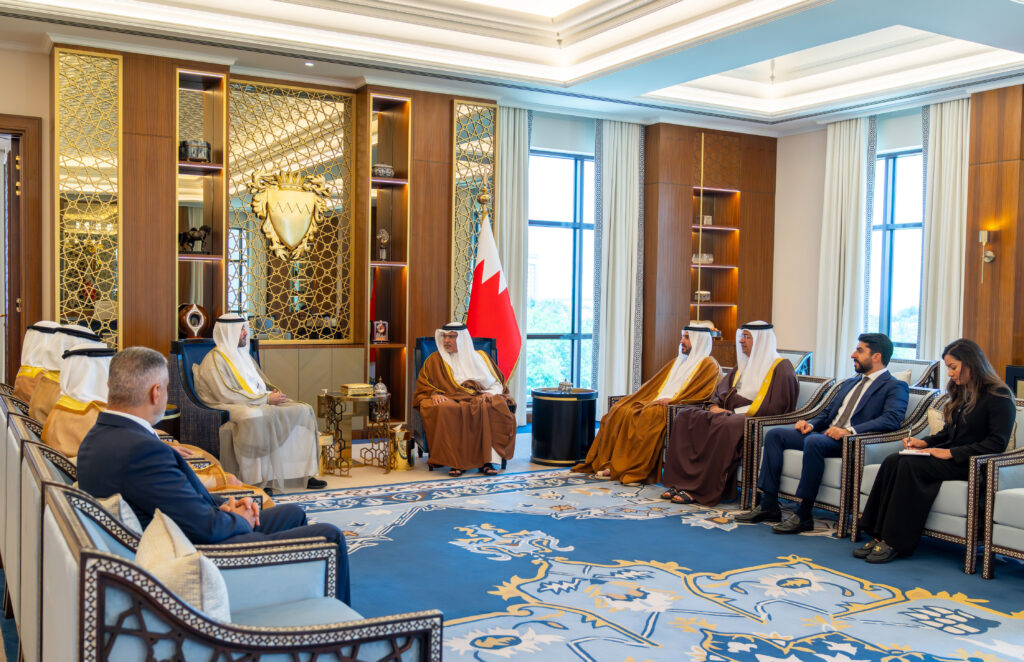 His Royal Highness Prince Salman bin Hamad Al Khalifa, the Crown Prince and Prime Minister, today met with Hamad Abdulmohsen Al-Marzouq, Chairman of the KFH Group and members of the board, at Gudaibiya Palace.