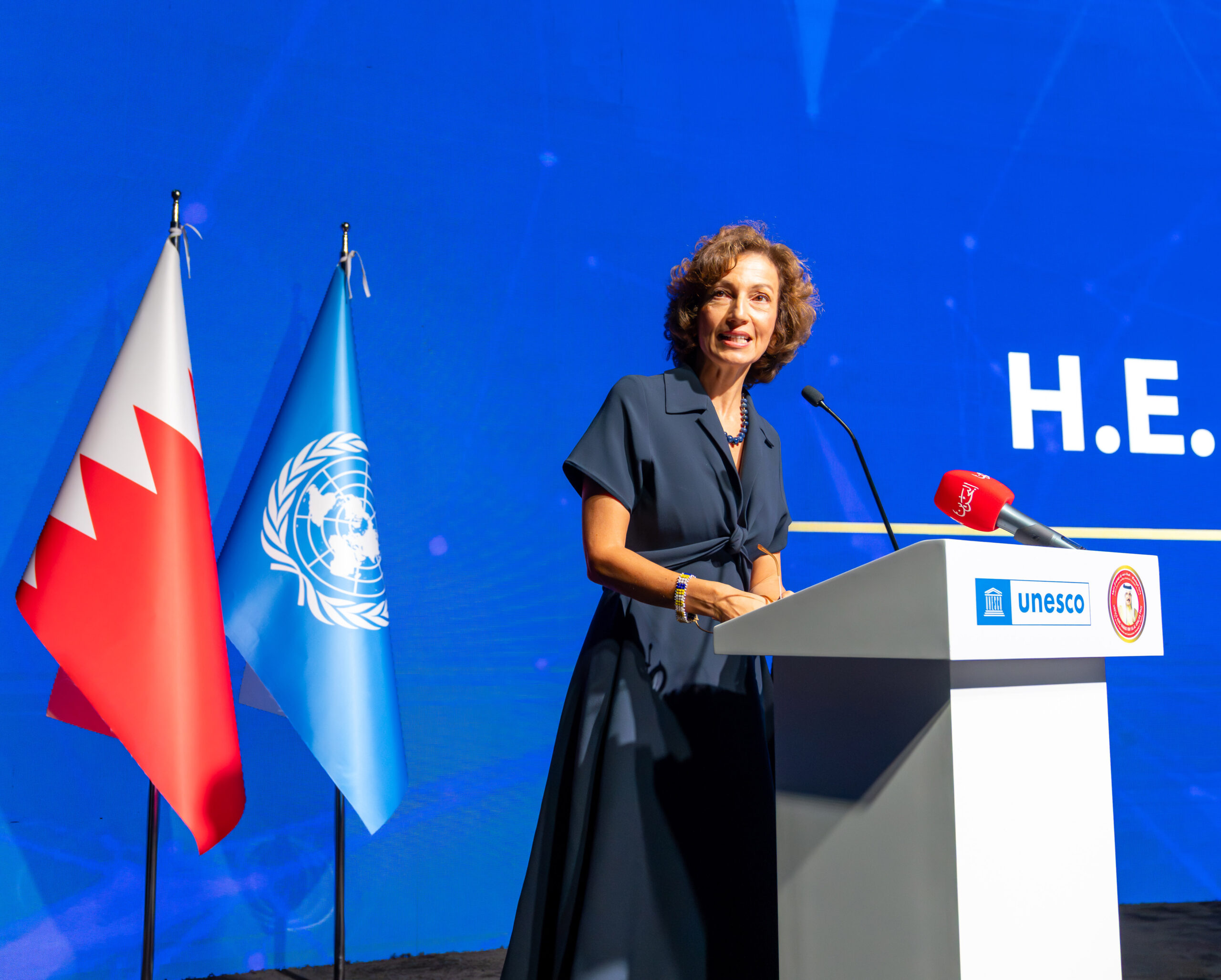 Her Excellency Audrey Azoulay, Director-General of UNESCO, expressed her appreciation to His Majesty King Hamad bin Isa Al Khalifa for his unwavering commitment to advancing education and for his directives to strengthen cooperation with UNESCO. HE Azoulay also extended her gratitude to the Kingdom of Bahrain and the Ministry of Education for hosting the awards ceremony.