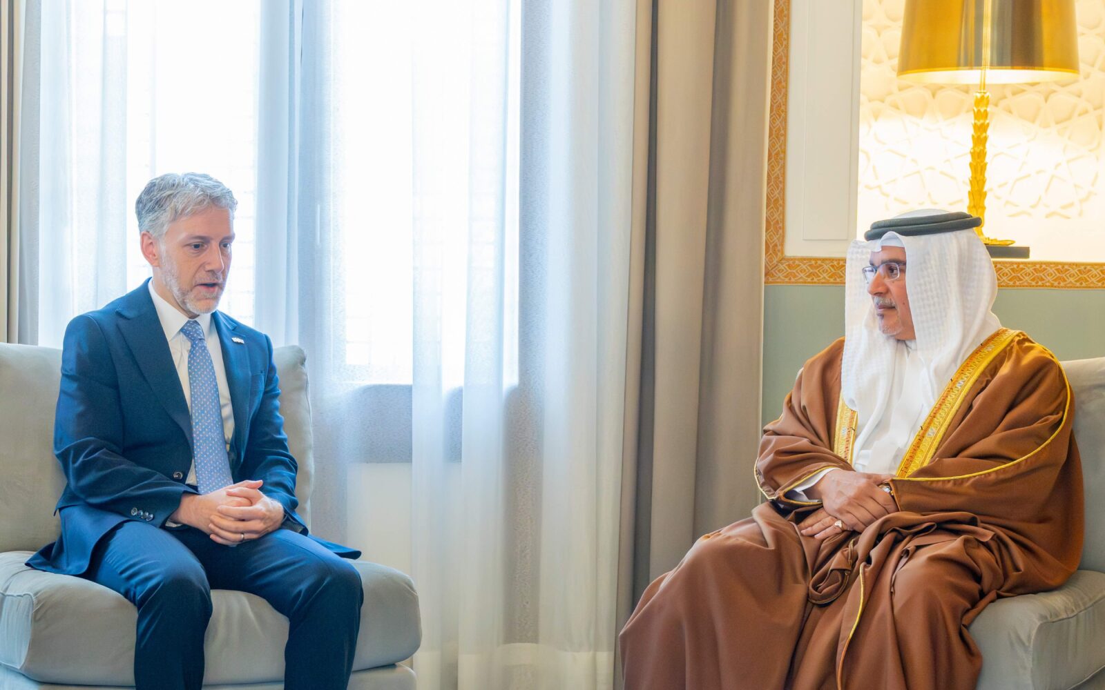 His Royal Highness Prince Salman bin Hamad Al Khalifa, the Crown Prince and Prime Minister, today met with His Excellency Alastair Long, the Ambassador of the United Kingdom to the Kingdom of Bahrain, at Riffa Palace.
