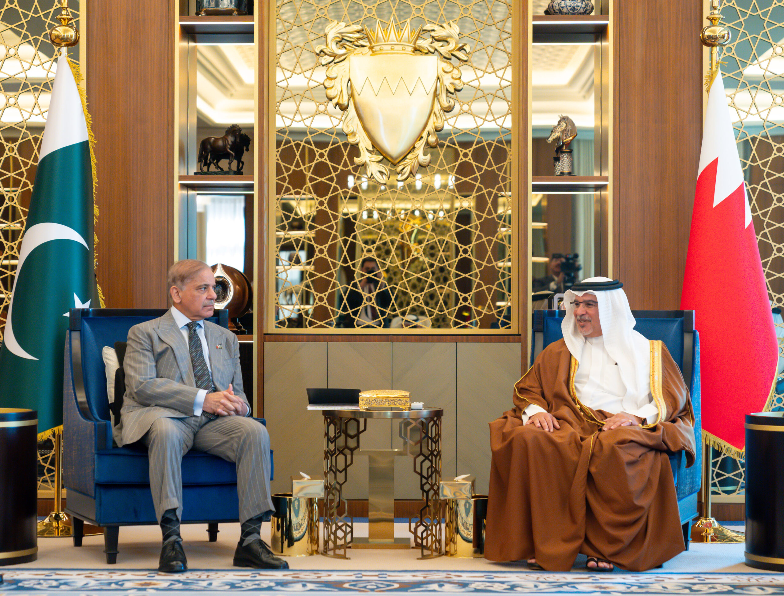 His Royal Highness Prince Salman bin Hamad Al Khalifa, the Crown Prince and Prime Minister, today met with His Excellency Muhammad Shehbaz Sharif, the Prime Minister of the Islamic Republic of Pakistan, at Gudaibiya Palace.