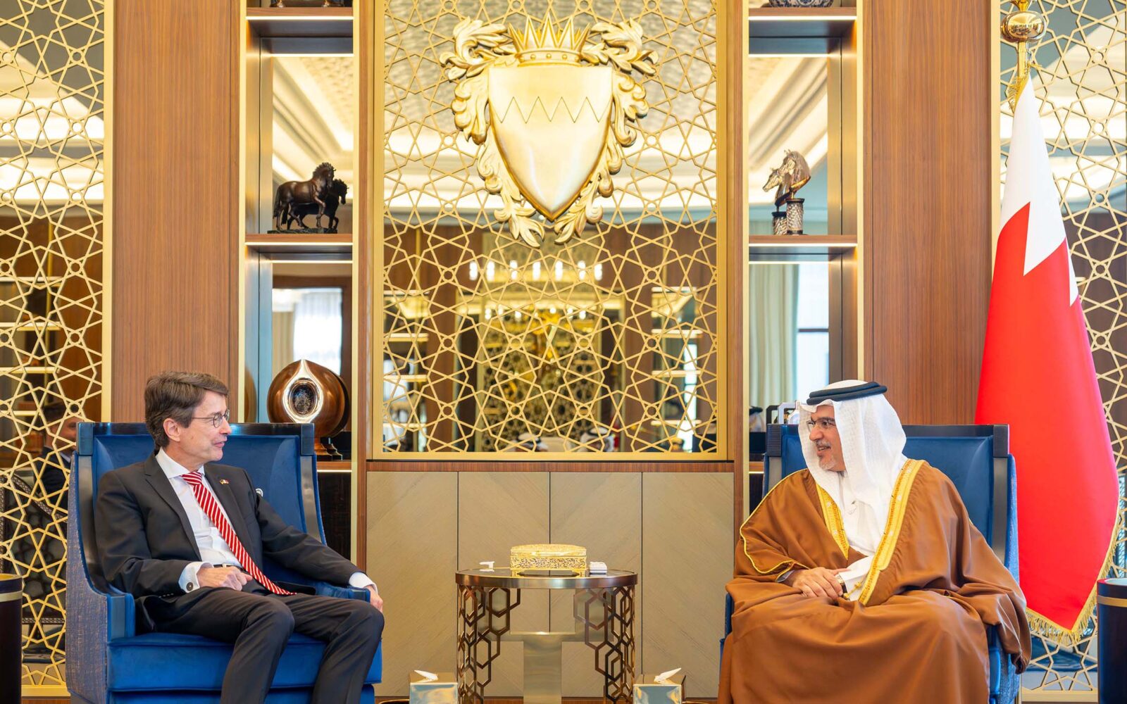 For his part, the newly appointed Ambassador of Germany expressed his gratitude for HRH the Crown Prince and Prime Minister’s commitment to further strengthening bilateral relations in support of shared aspirations. HE the Ambassador concluded by wishing the Kingdom of Bahrain continued growth and prosperity.