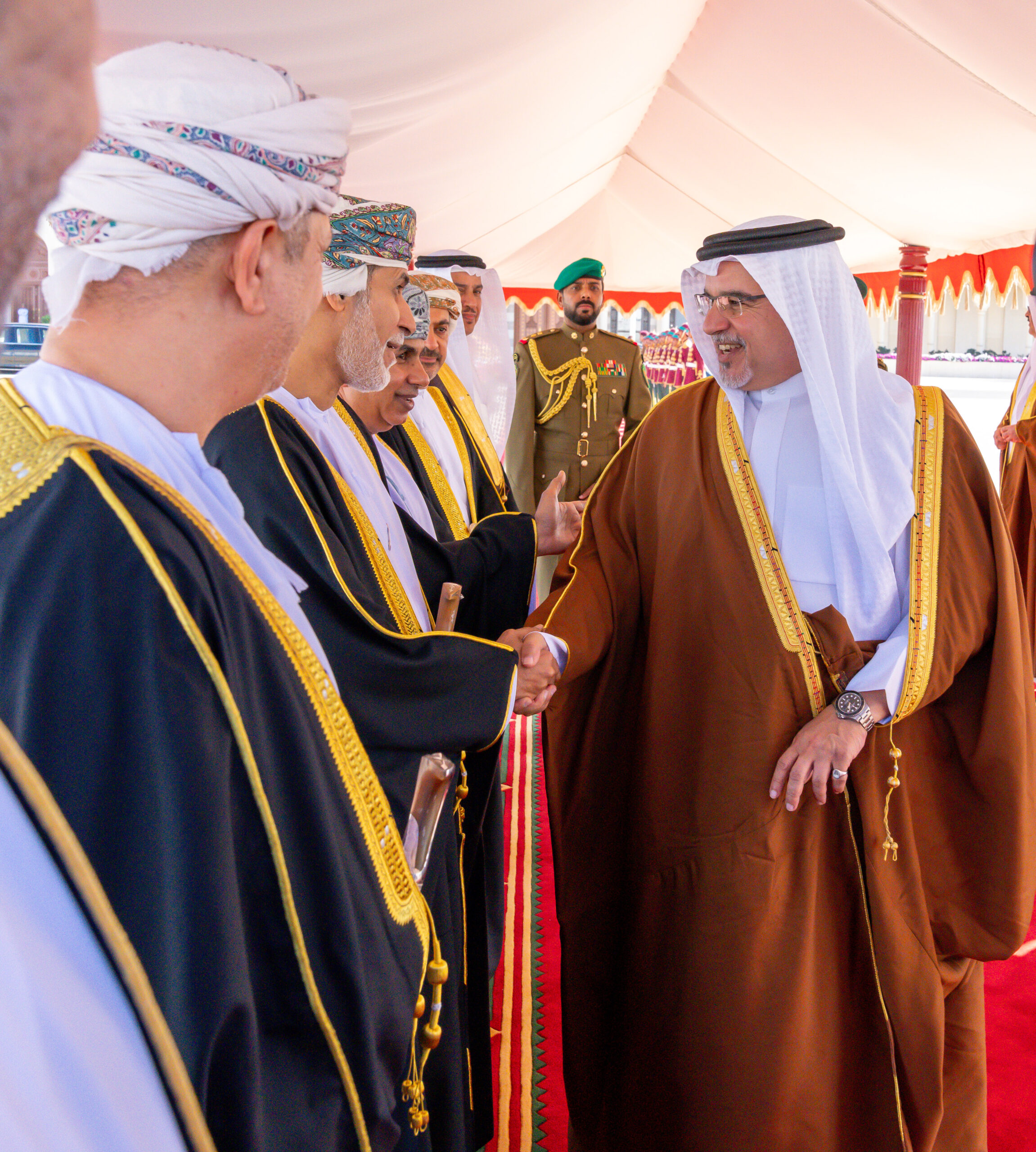 His Royal Highness Prince Salman bin Hamad Al Khalifa, the Crown Prince and Prime Minister, departed the Sultanate of Oman following a visit, during which His Royal Highness met with His Majesty Sultan Haitham bin Tariq Al-Said, the Sultan of the Sultanate of Oman.