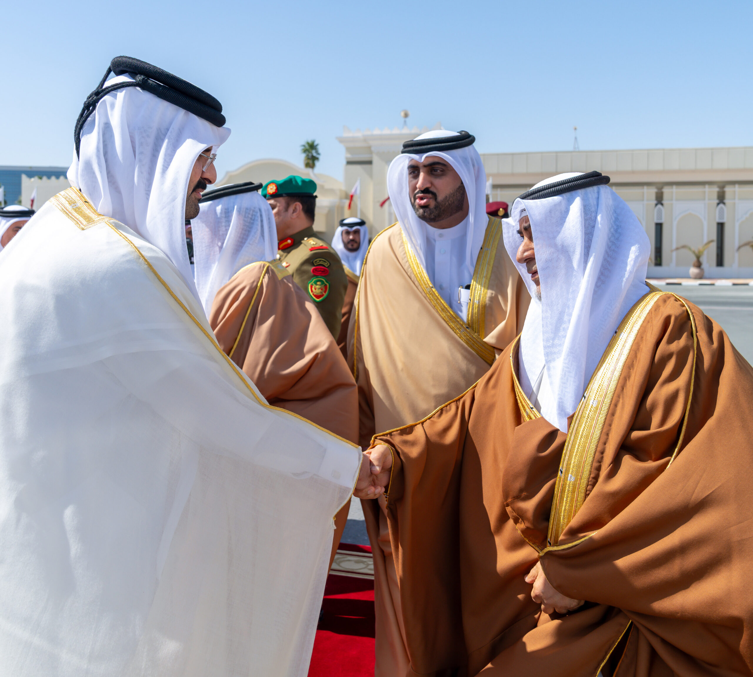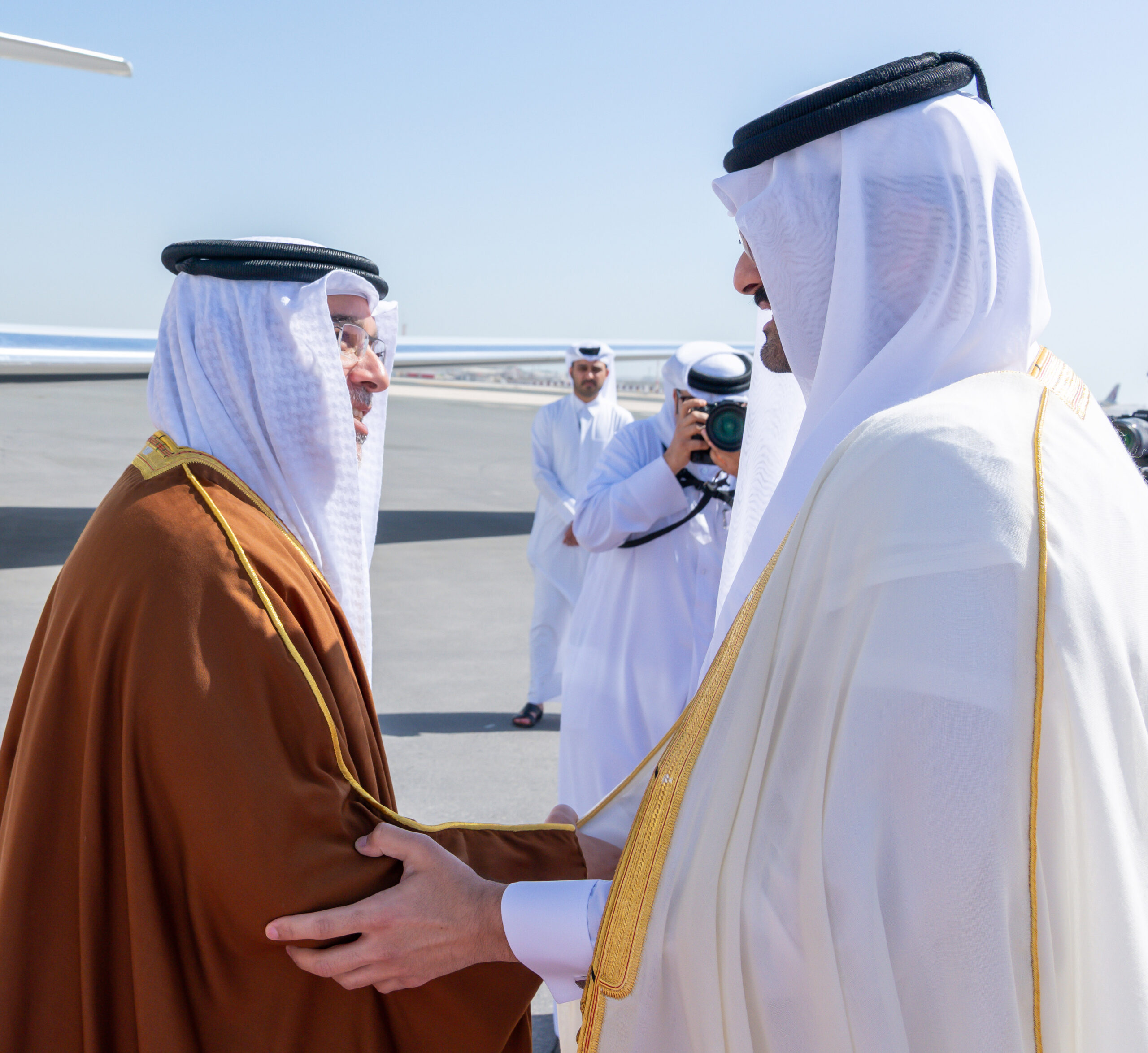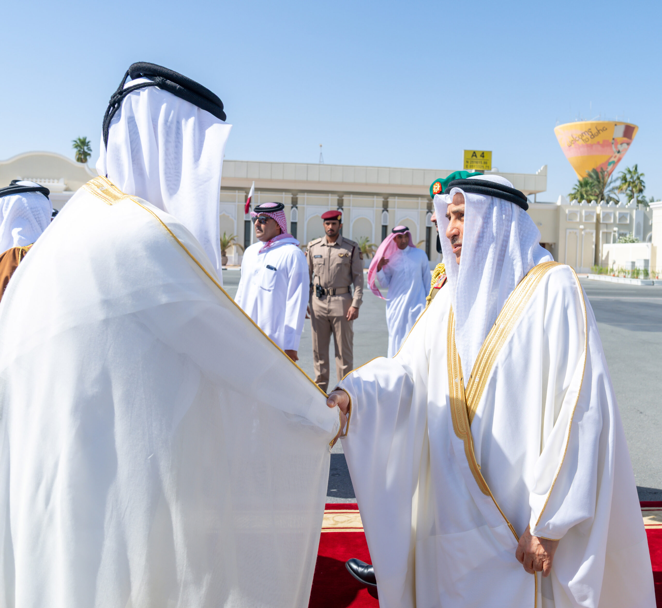 Upon arrival, His Royal Highness was received by His Highness Sheikh Abdullah bin Hamad Al Thani, Deputy Amir of the State of Qatar, along with several senior Qatari officials.