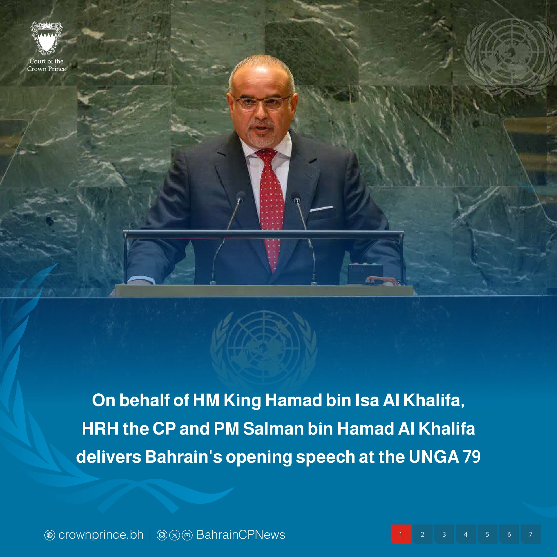 HRH the Crown Prince and Prime Minister delivers a speech at the UNGA 79