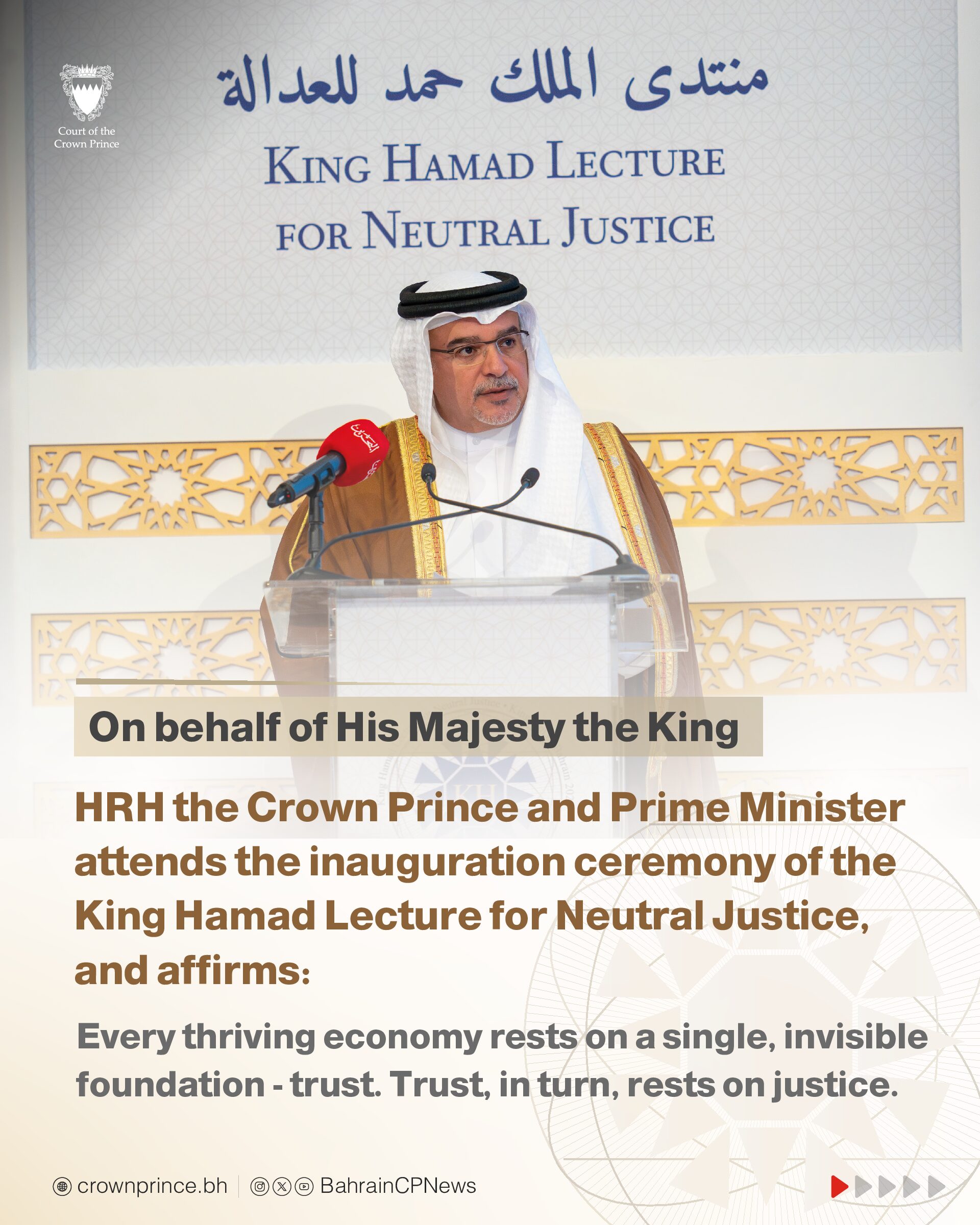 HRH the Crown Prince and Prime Minister attends the inauguration ceremony of the King Hamad Lecture for Neutral Justice