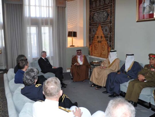استقبل صاحب السمو الملكي الأمير سلمان بن حمد آل خليفة ولي العهد نائب القائد الأعلى حفظه الله ، بقصر الرفاع اليوم ، مستشار الدفاع البريطاني للشرق الأوسط الجنرال سيمون مايال.