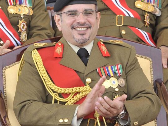 نيابة عن حضرة صاحب الجلالة الملك حمد بن عيسى آل خليفة عاهل البلاد المفدى القائد الأعلى حفظه الله ورعاه شهد صاحب السمو الملكي الأمير سلمان بن حمد آل خليفة ولي العهد نائب القائد الأعلى حفل تخريج الدفعة العشرين من مرشحي الضباط الجامعيين والدفعة التاسعة من مرشحي الضباط ( سرية القادسية ) بكلية عيسى العسكرية الملكية وذلك صباح اليوم .