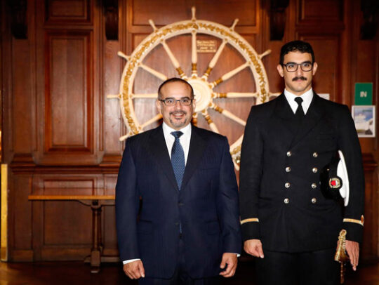 فع صاحب السمو الملكي الأمير سلمان بن حمد آل خليفة ولي العهد نائب القائد الأعلى النائب الأول لرئيس مجلس الوزراء التهاني والتبريكات إلى مقام حضرة صاحب الجلالة الملك حمد بن عيسى آل خليفة عاهل البلاد المفدى القائد الأعلى حفظه الله ورعاه بمناسبة تخرج نجل سموه حفظه الله سمو الشيخ عيسى بن سلمان بن حمد آل خليفة، وحصوله على امتياز مع مرتبة الشرف من الكلية البحرية الملكية البريطانية بمدينة دارتموث ونيل سموه جائزة آمر الكلية لدفعته.