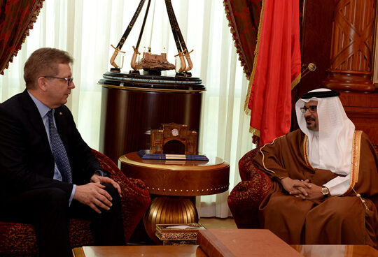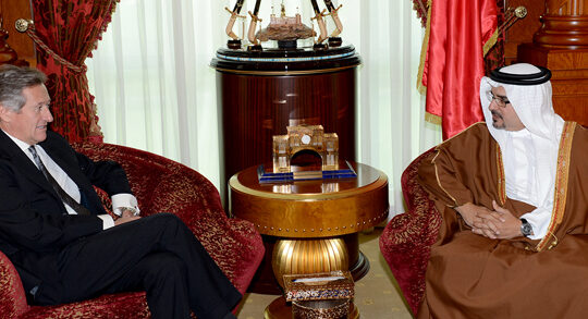رحب صاحب السمو الملكي الأمير سلمان بن حمد آل خليفة ولي العهد نائب القائد الأعلى النائب الأول لرئيس مجلس الوزراء بسفير جمهورية ألمانيا الاتحادية لدى المملكة سعادة السيد ألفريد سيمز بروتس، مؤكداً سموه الدعم المستمر لتنامي العلاقات مع ألمانيا الصديقة مما يحظى باهتمام قيادتي البلدين ويعززه إلتقاء الرؤى في العديد من النواحي الاستراتيجية.