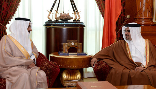 التقى حضرة صاحب الجلالة الملك حمد بن عيسى آل خليفة عاهل البلاد المفدى حفظه الله ورعاه بقصر الصخير هذا اليوم صاحب السمو الملكي الأمير خليفة بن سلمان آل خليفة رئيس الوزراء الموقر، بحضور صاحب السمو الملكي الأمير سلمان بن حمد آل خليفة ولي العهد نائب القائد الأعلى النائب الأول لرئيس مجلس الوزراء.