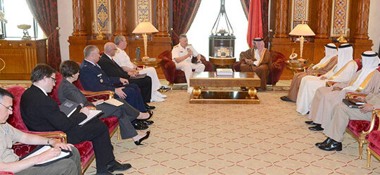 استقبل صاحب السمو الملكي الأمير سلمان بن حمد آل خليفة نائب جلالة الملك المفدى ولي العهد حفظه الله ، في قصر القضيبية اليوم بحضور نجله سمو الشيخ عيسى بن سلمان بن حمد ال خليفة ، الفريق أول بحري مارك فوكس نائب قائد القيادة المركزية الأمريكية.