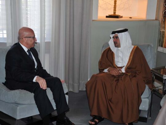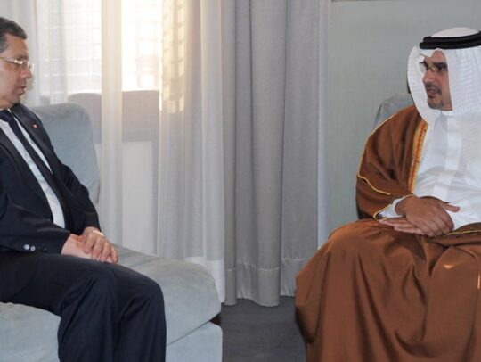 استقبل صاحب السمو الملكي الأمير سلمان بن حمد آل خليفة نائب جلالة الملك المفدى ولي العهد حفظه الله بقصر الرفاع هذا اليوم سعادة السيد زين العابدين التراس سفير الجمهورية التونسية الشقيقة لدى مملكة البحرين وذلك بمناسبة انتهاء فترة عمله في البلاد .