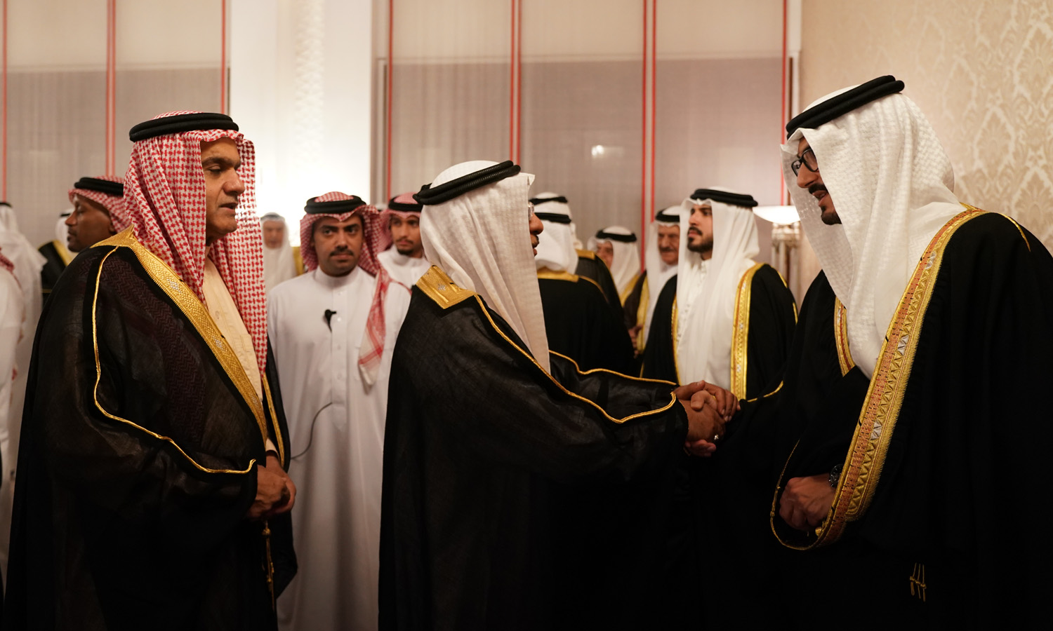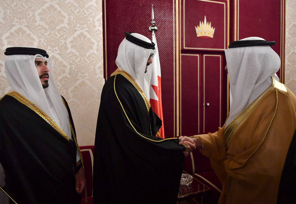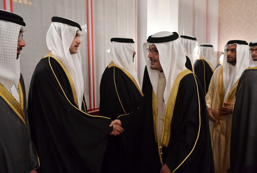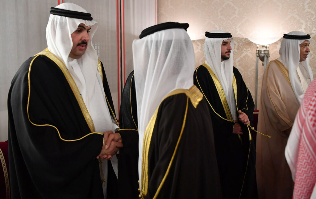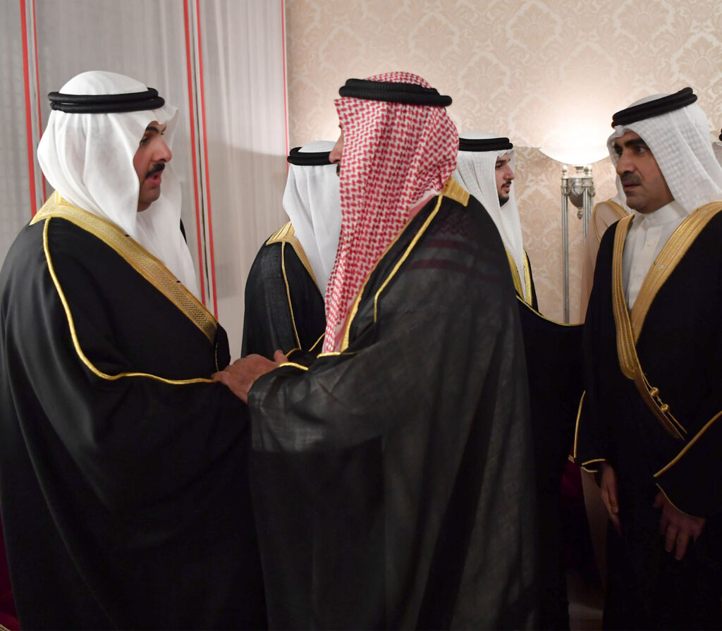 11 يونيو 2018 سمو ولي العهد وبحضور سمو الشيخ عيسى وسمو الشيخ محمد يستقبل المعزين بوفاة صاحبة السمو الشيخة هالة بنت دعيج