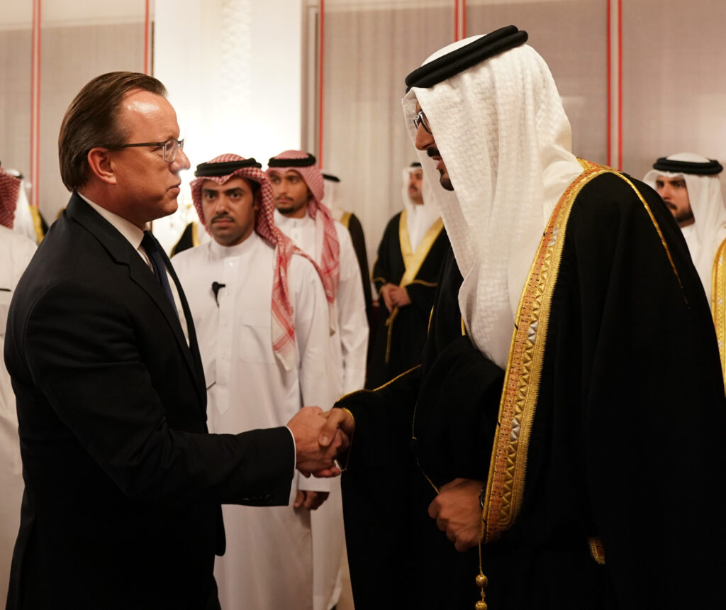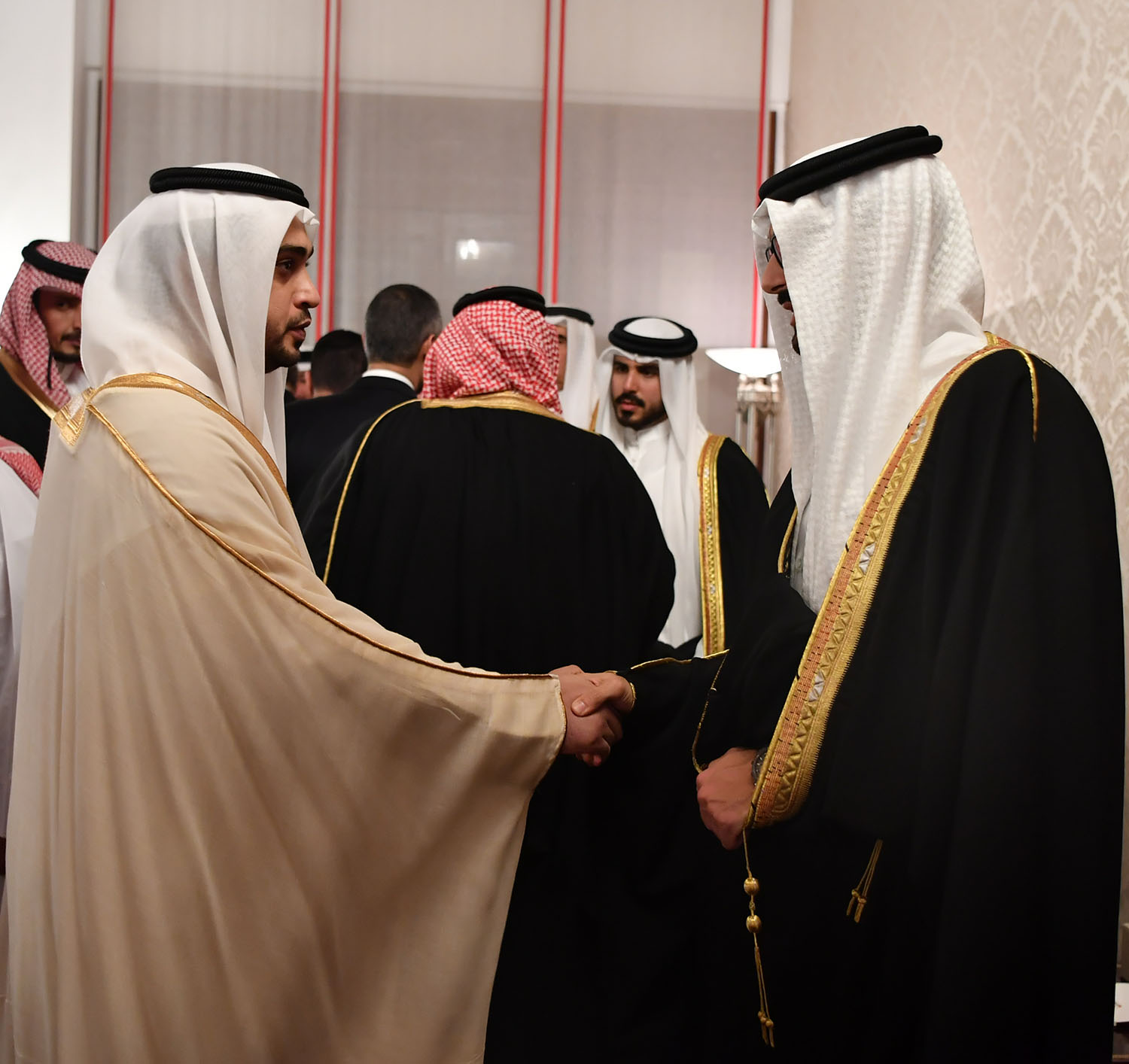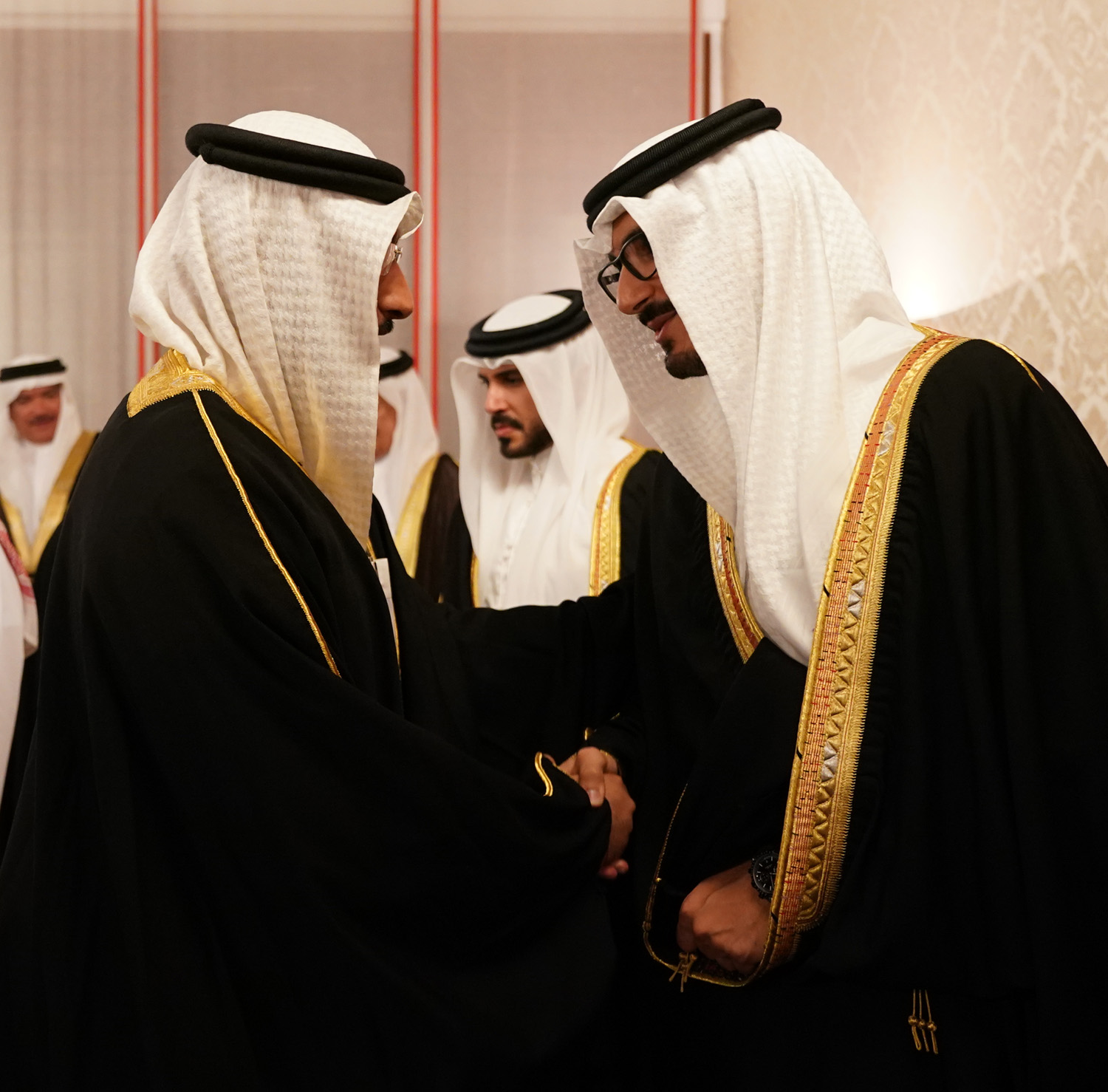 11 يونيو 2018 سمو ولي العهد وبحضور سمو الشيخ عيسى وسمو الشيخ محمد يستقبل المعزين بوفاة صاحبة السمو الشيخة هالة بنت دعيج