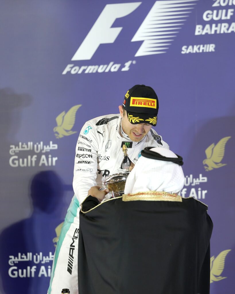 سمو ولي العهد يتوج نيكو روزبيرغ بطلا لجائزة البحرين الكبرى لطيران الخليج