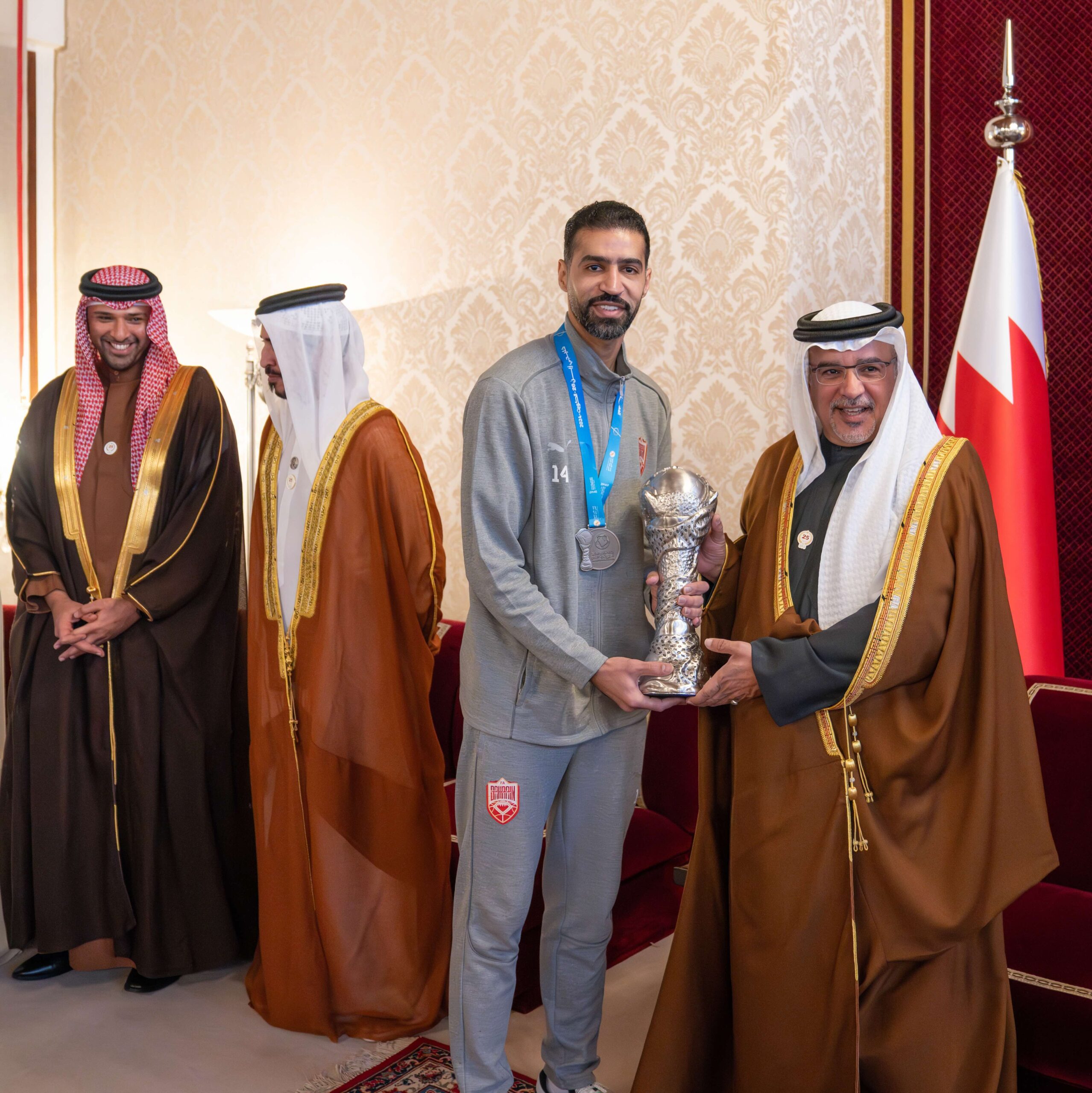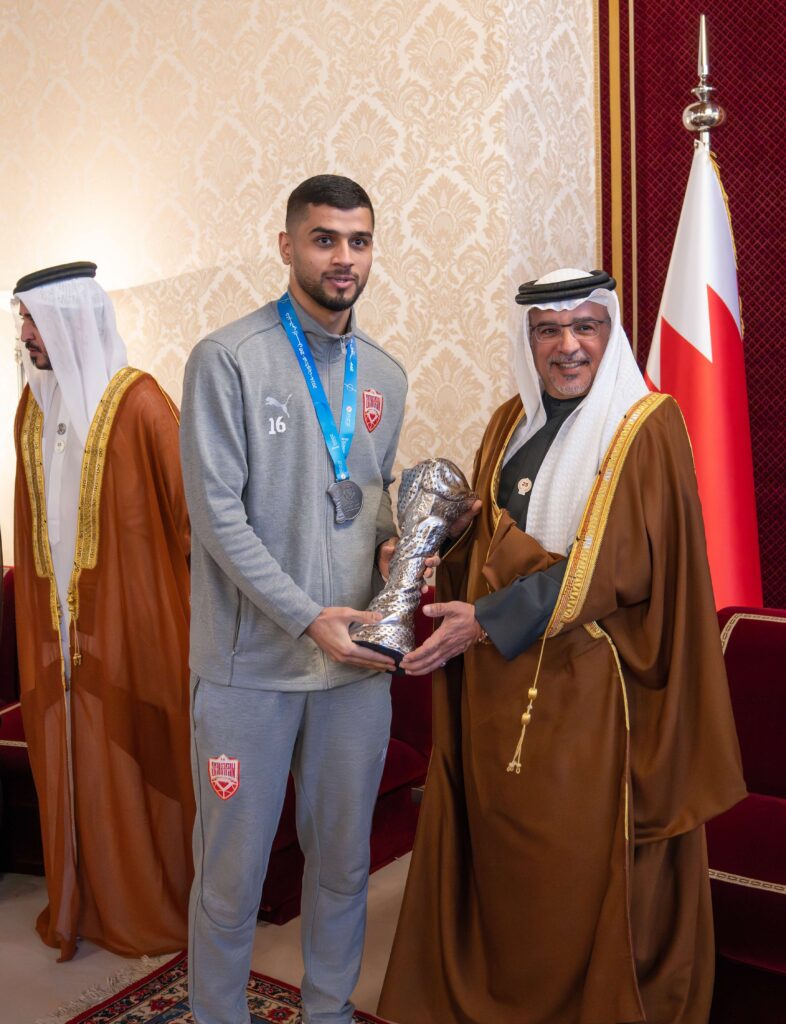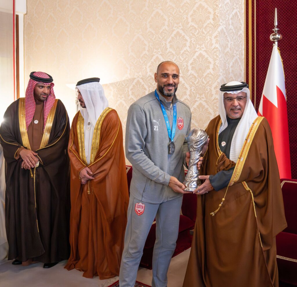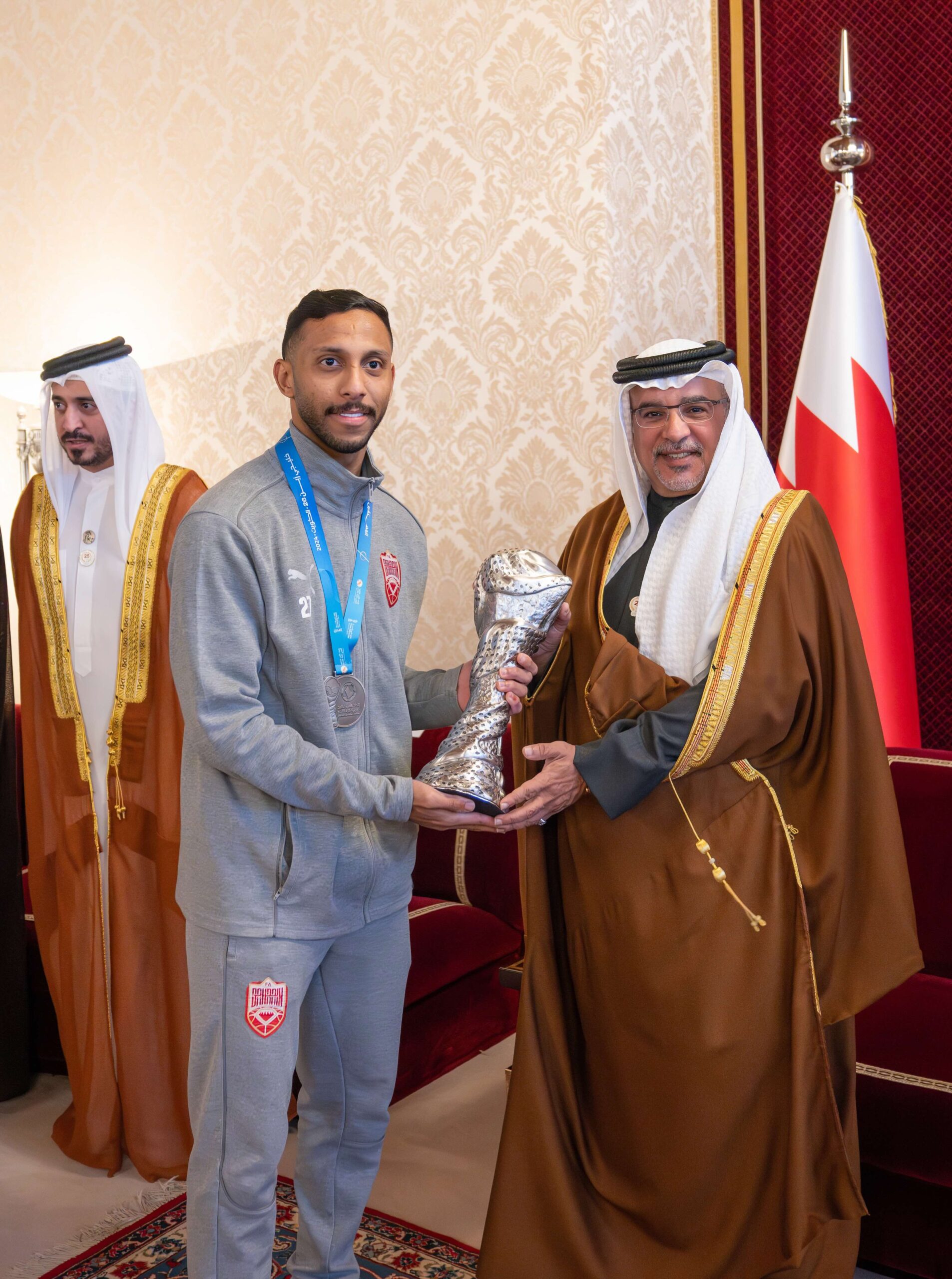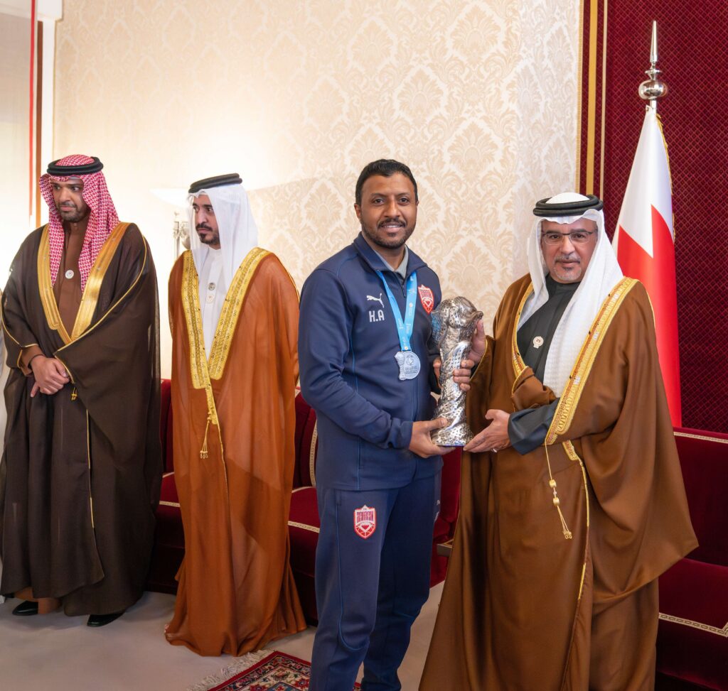 8 يناير 2025 سمو ولي العهد رئيس مجلس الوزراء يلتقي لاعبي منتخب البحرين الوطني لكرة القدم والجهازين الإداري والفني بمناسبة حصول المنتخب الوطني الأول لكرة القدم على لقب بطولة كأس الخليج العربي السادسة والعشرين لكرة القدم