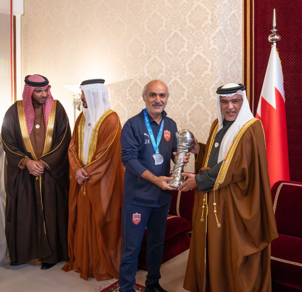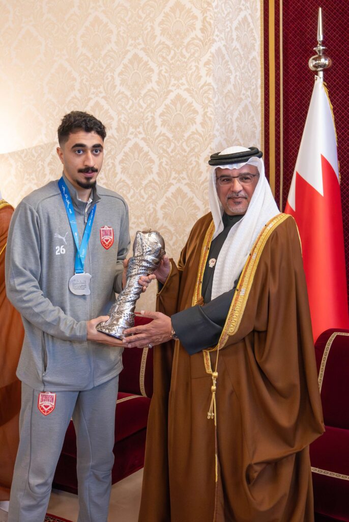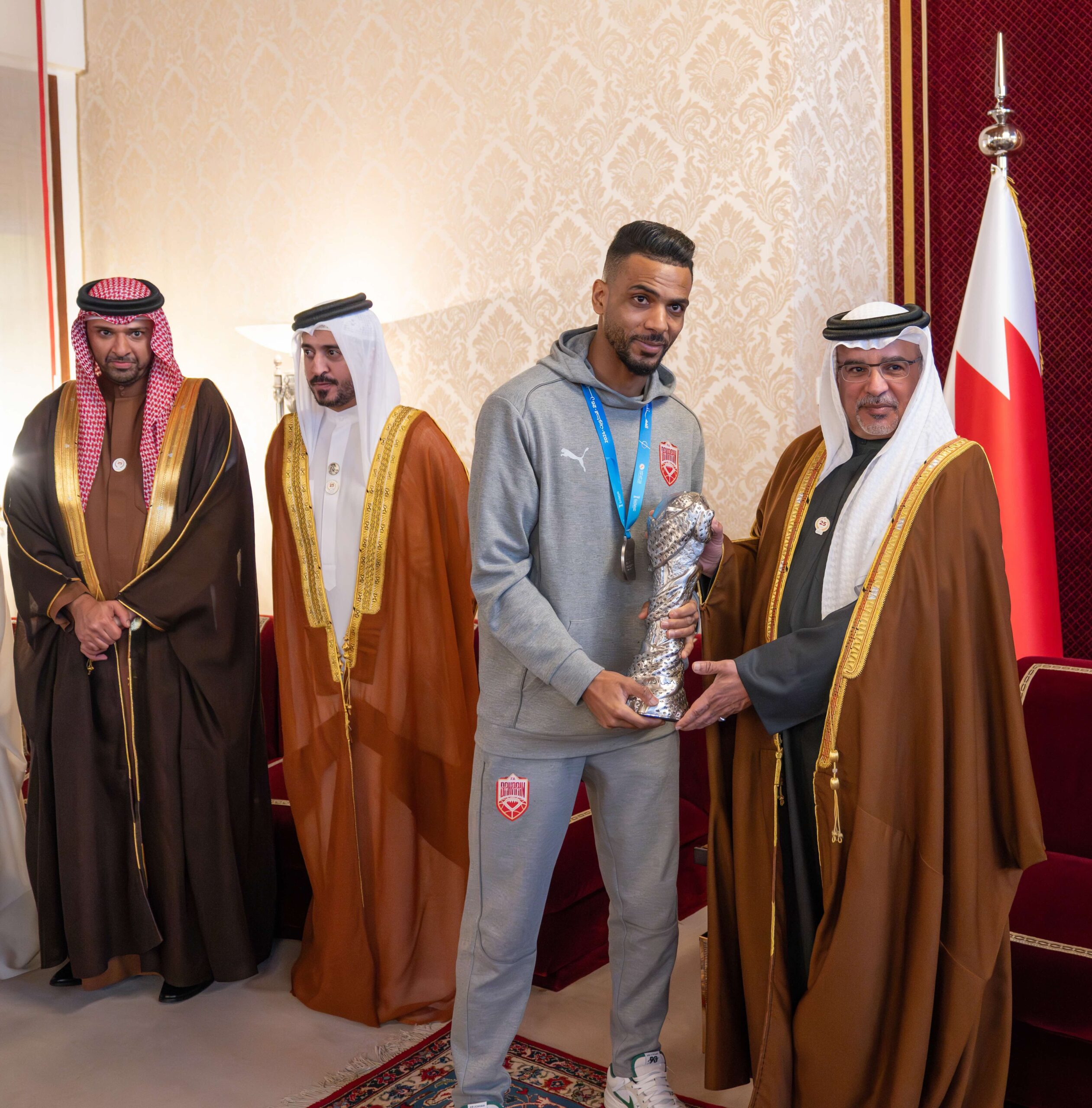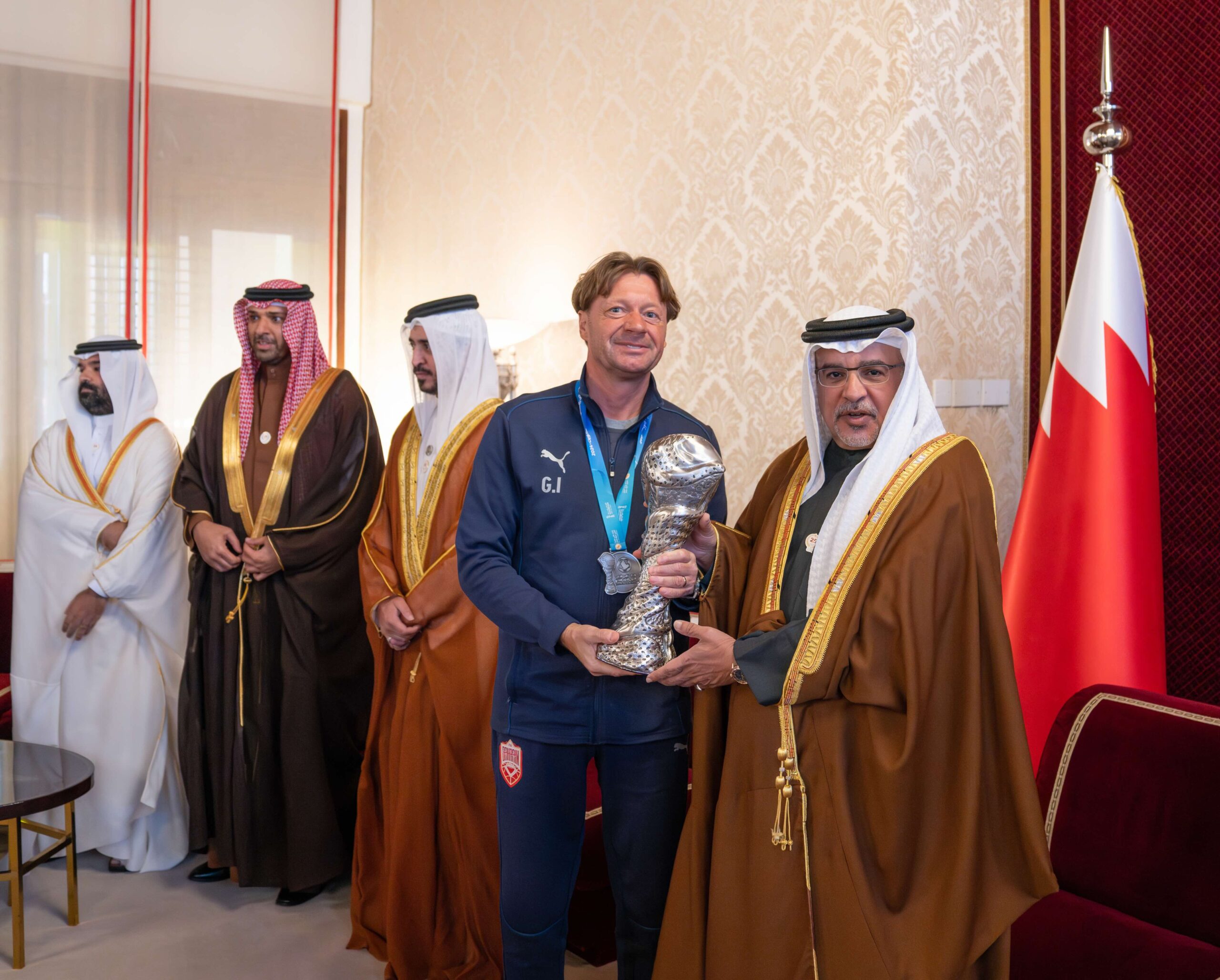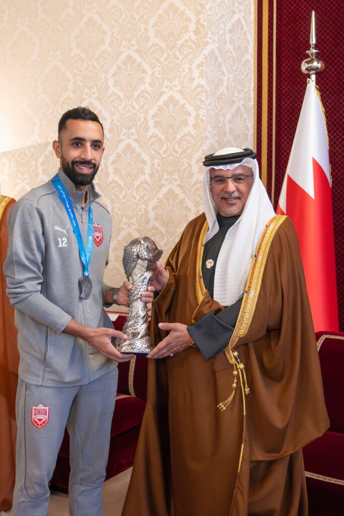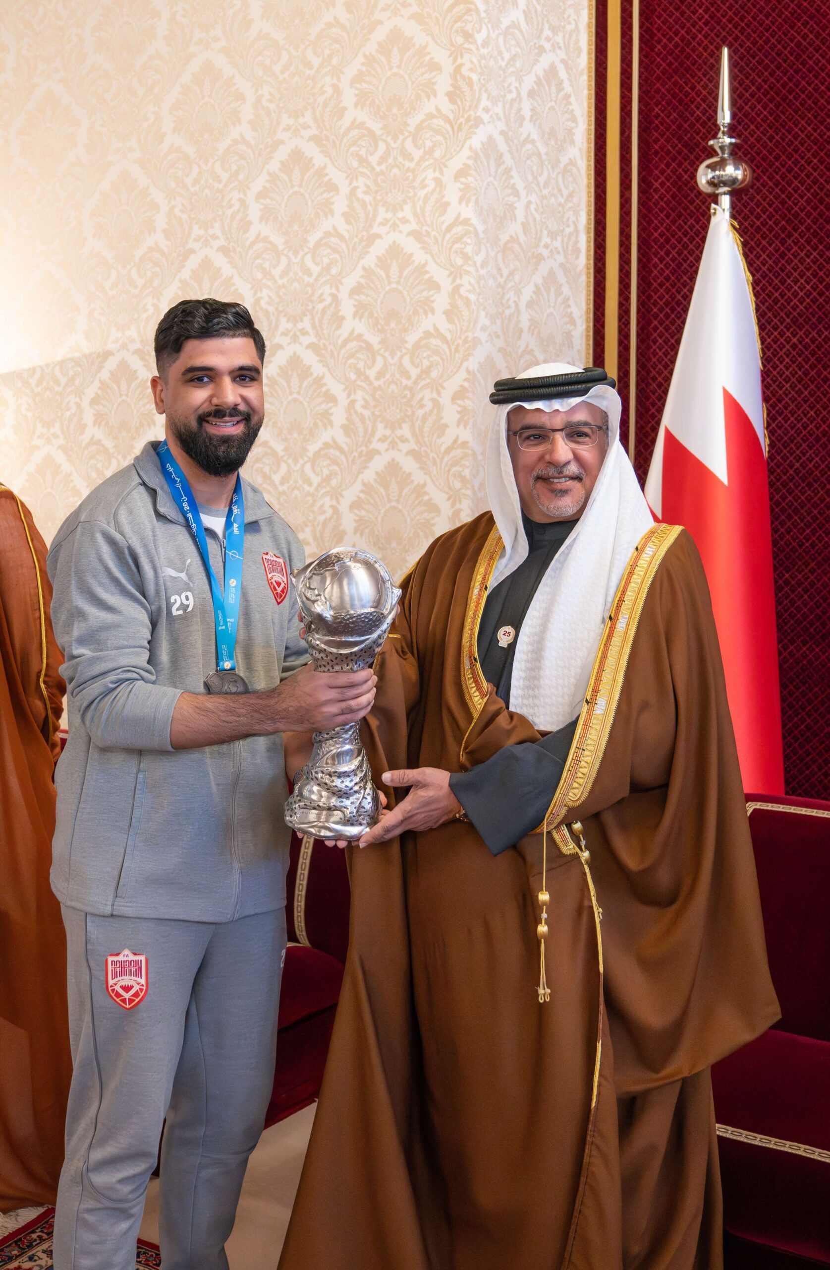 8 يناير 2025 سمو ولي العهد رئيس مجلس الوزراء يلتقي لاعبي منتخب البحرين الوطني لكرة القدم والجهازين الإداري والفني بمناسبة حصول المنتخب الوطني الأول لكرة القدم على لقب بطولة كأس الخليج العربي السادسة والعشرين لكرة القدم