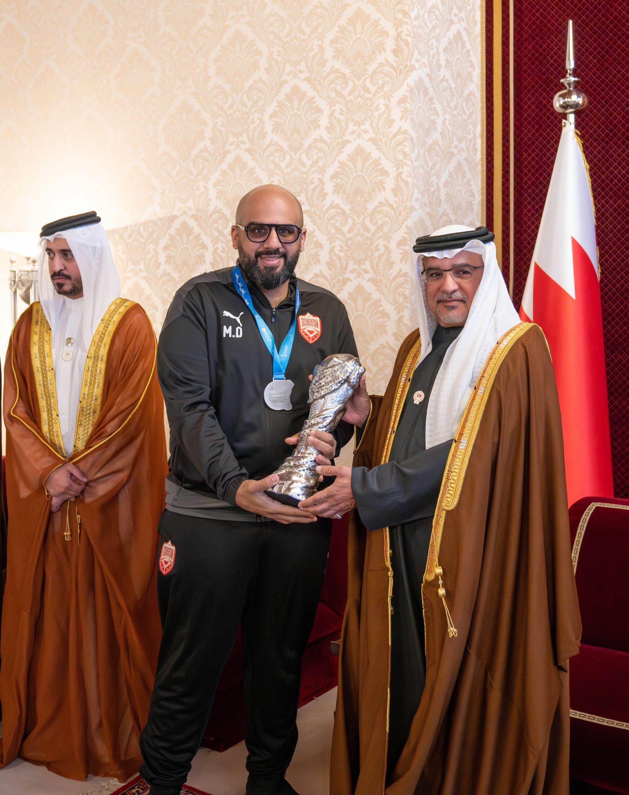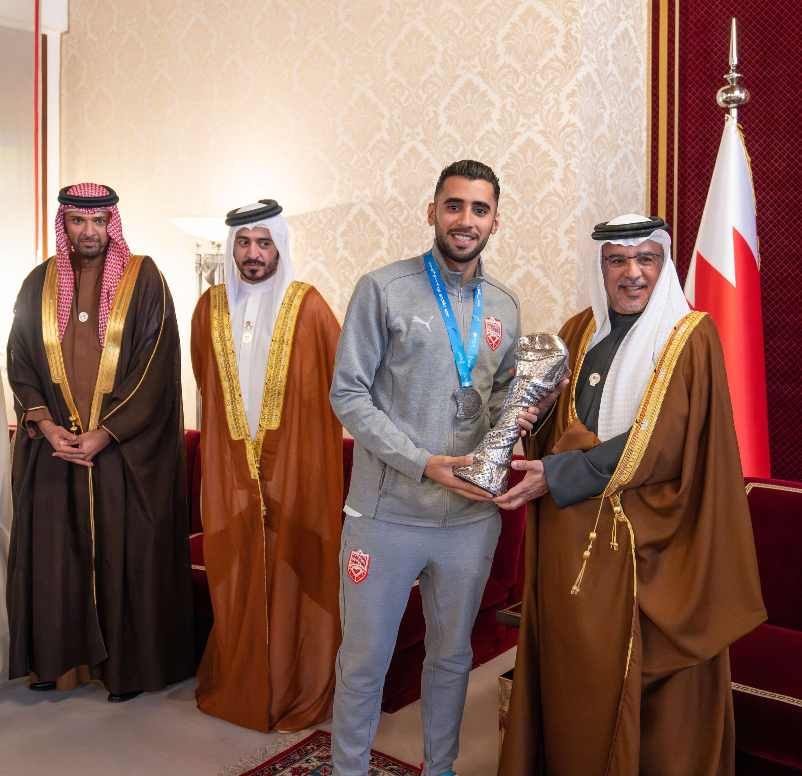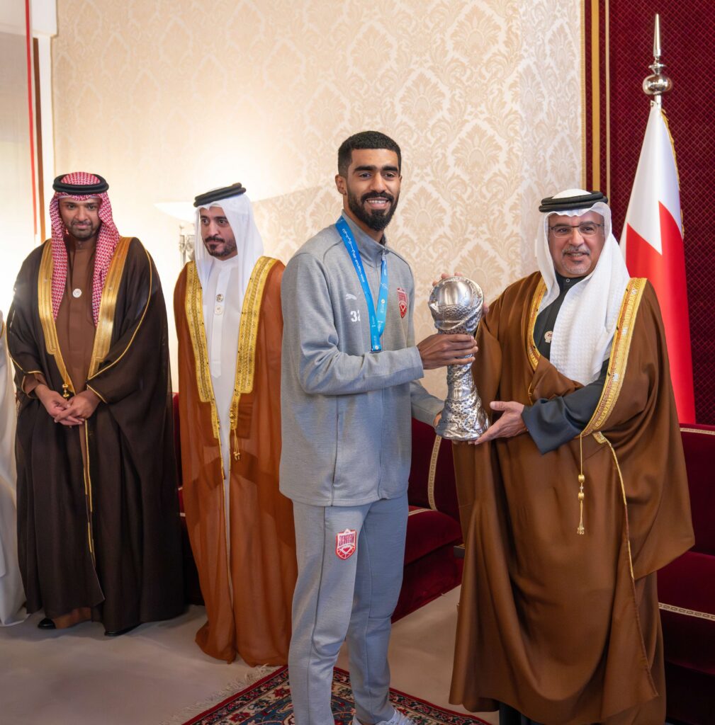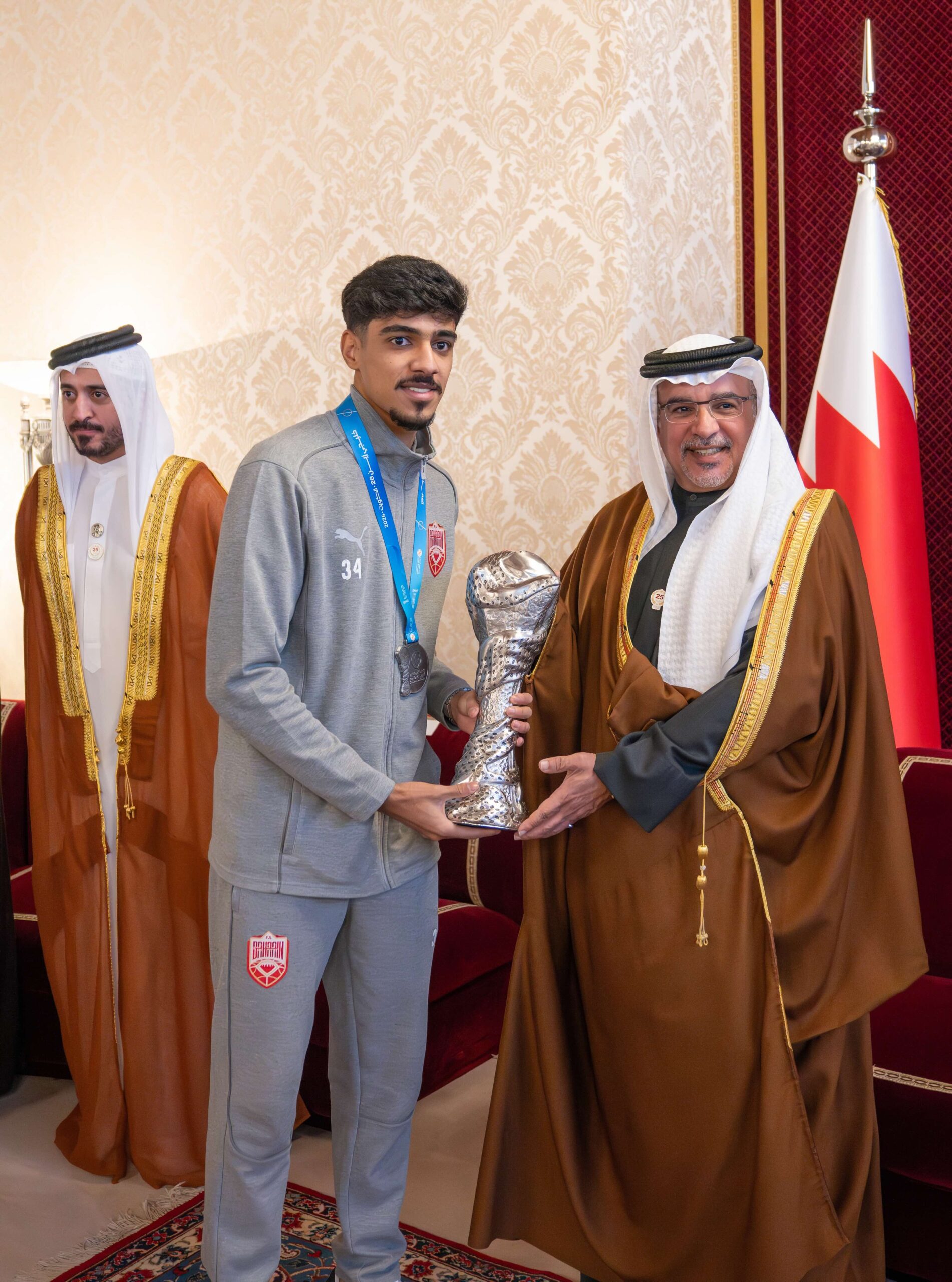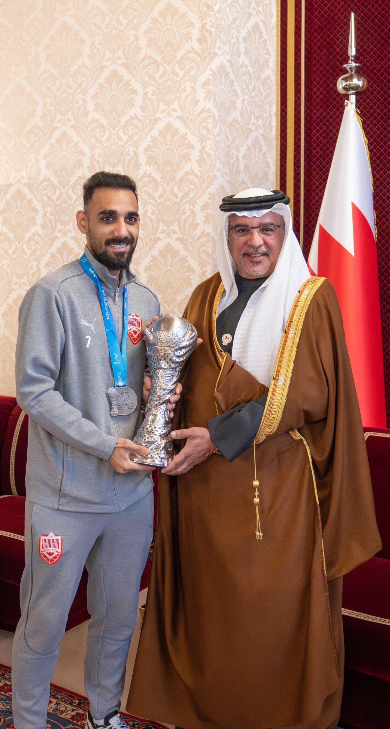 8 يناير 2025 سمو ولي العهد رئيس مجلس الوزراء يلتقي لاعبي منتخب البحرين الوطني لكرة القدم والجهازين الإداري والفني بمناسبة حصول المنتخب الوطني الأول لكرة القدم على لقب بطولة كأس الخليج العربي السادسة والعشرين لكرة القدم