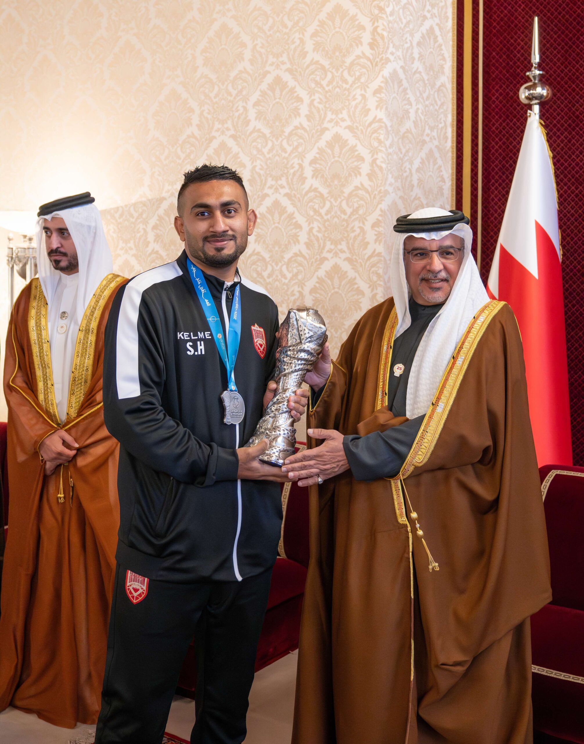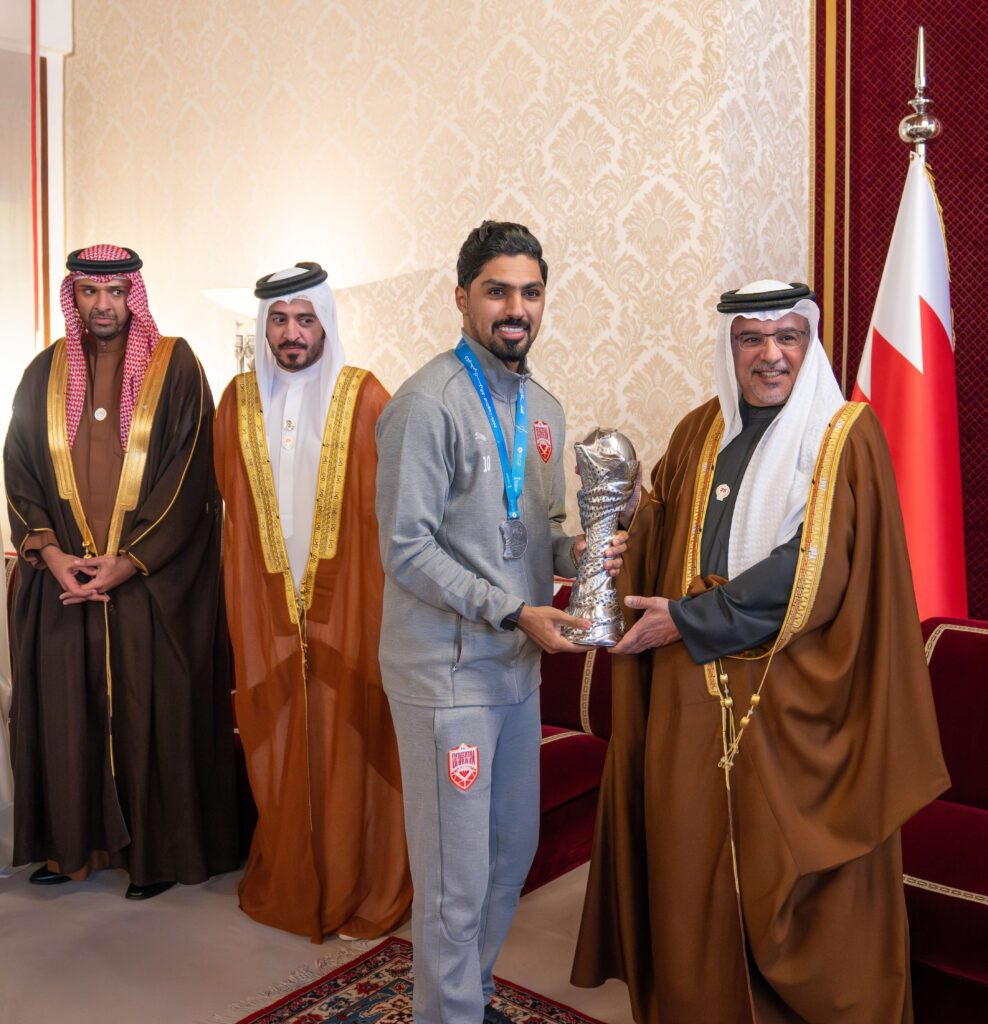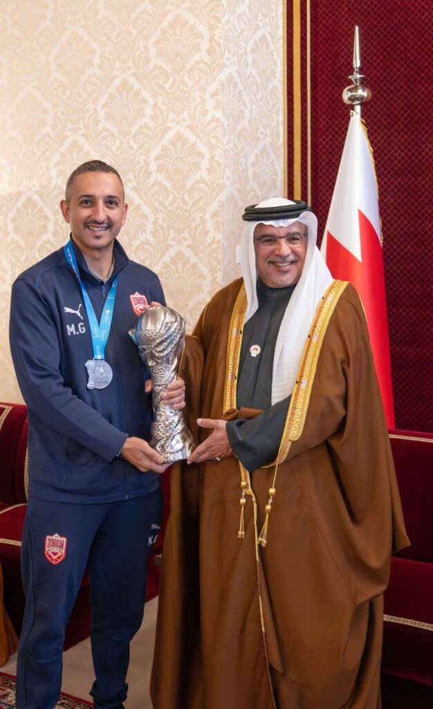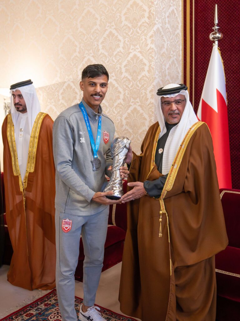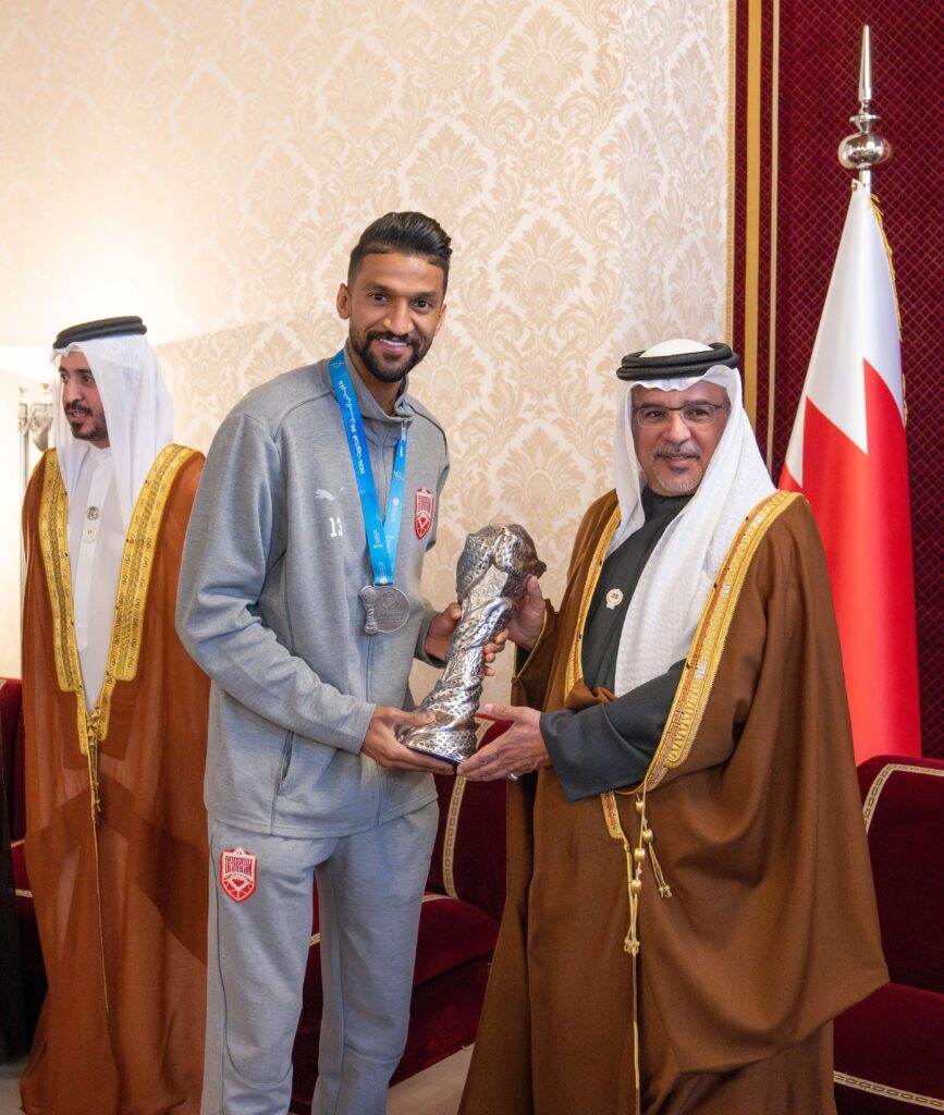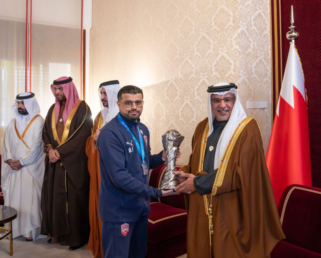 8 يناير 2025 سمو ولي العهد رئيس مجلس الوزراء يلتقي لاعبي منتخب البحرين الوطني لكرة القدم والجهازين الإداري والفني بمناسبة حصول المنتخب الوطني الأول لكرة القدم على لقب بطولة كأس الخليج العربي السادسة والعشرين لكرة القدم