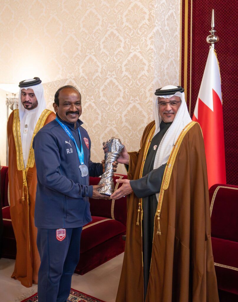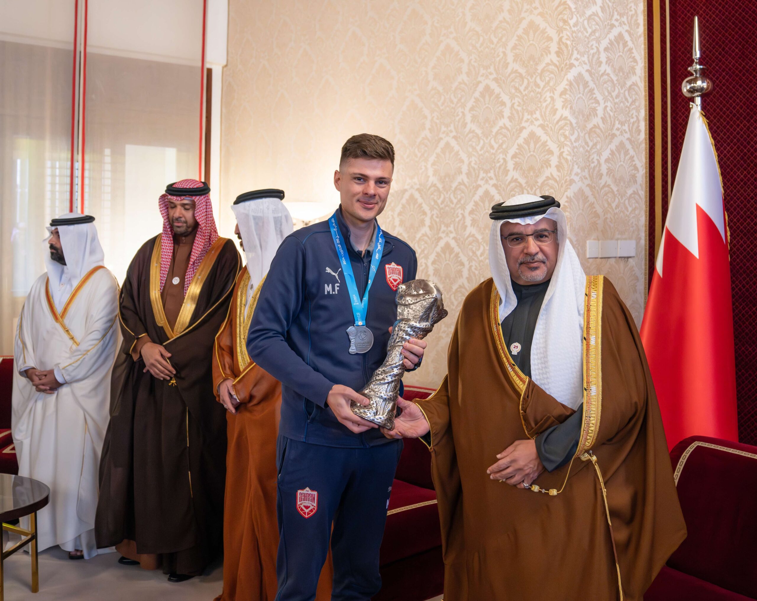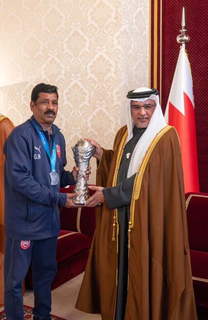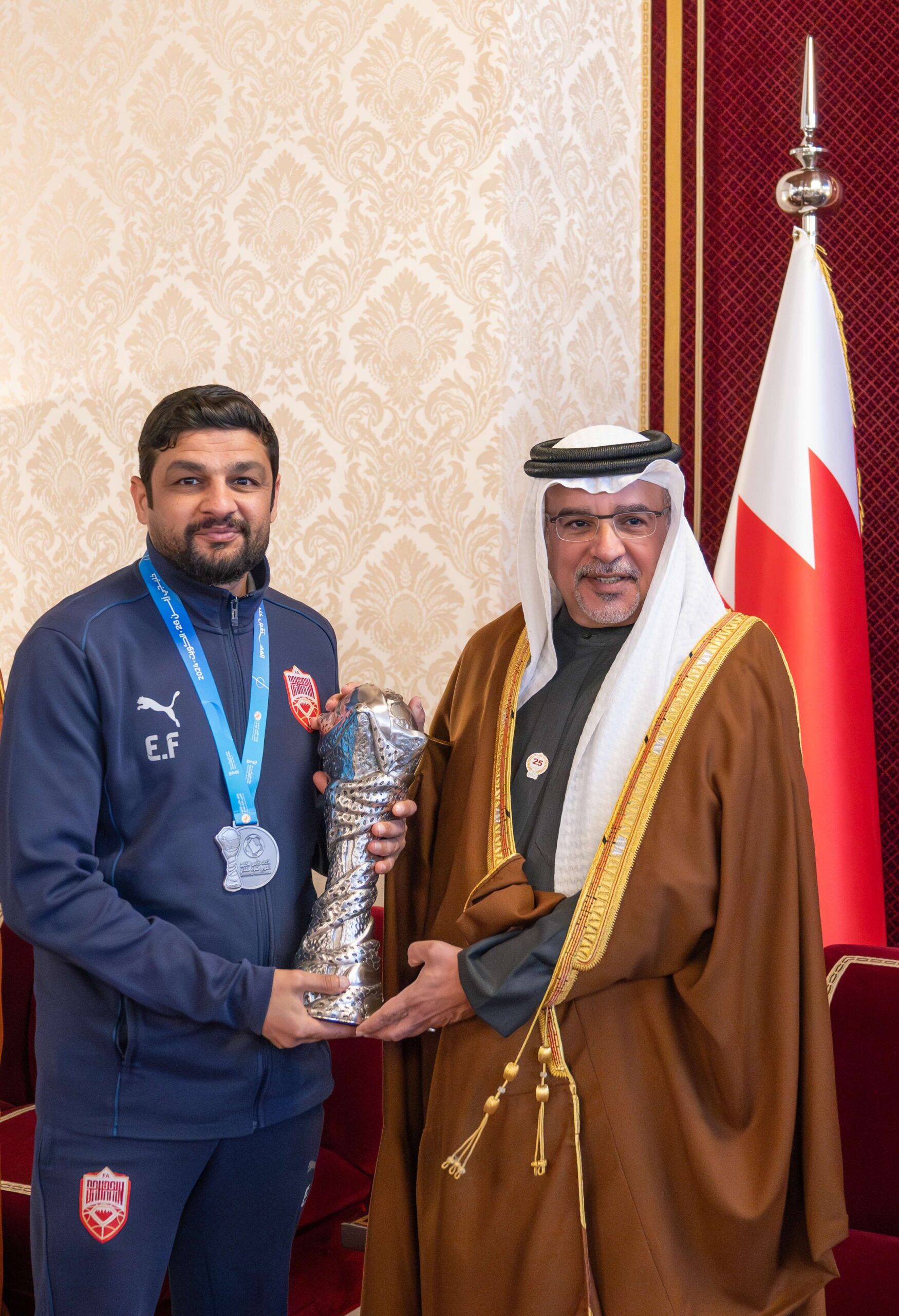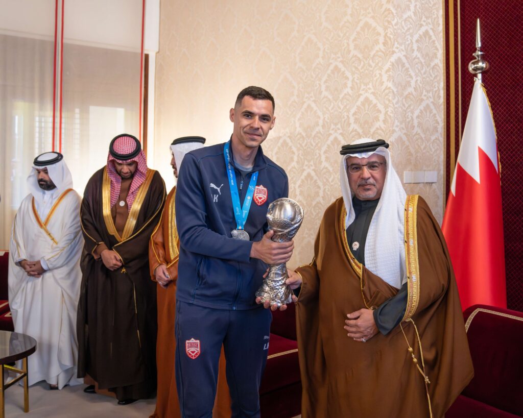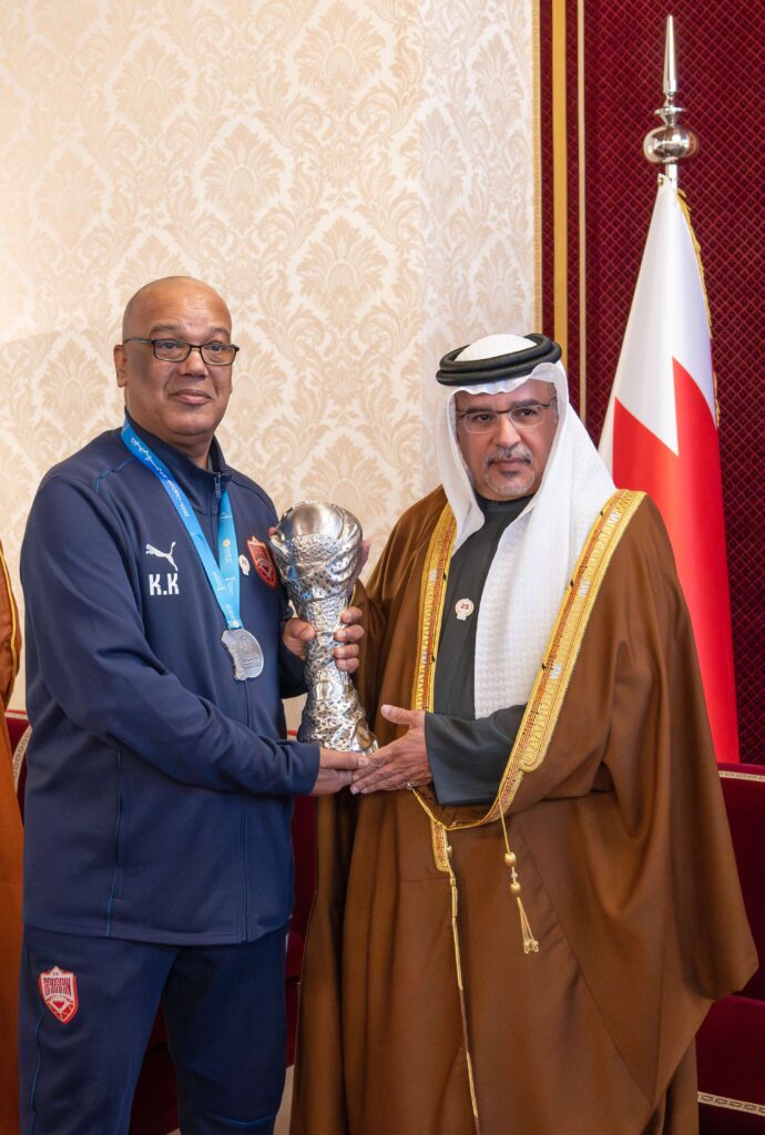 8 يناير 2025 سمو ولي العهد رئيس مجلس الوزراء يلتقي لاعبي منتخب البحرين الوطني لكرة القدم والجهازين الإداري والفني بمناسبة حصول المنتخب الوطني الأول لكرة القدم على لقب بطولة كأس الخليج العربي السادسة والعشرين لكرة القدم
