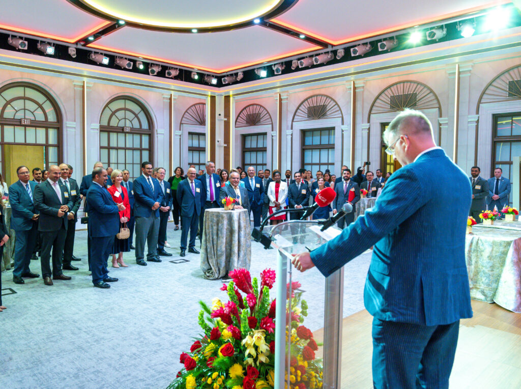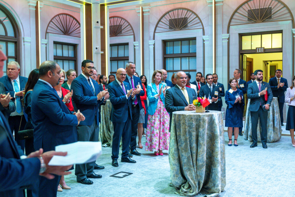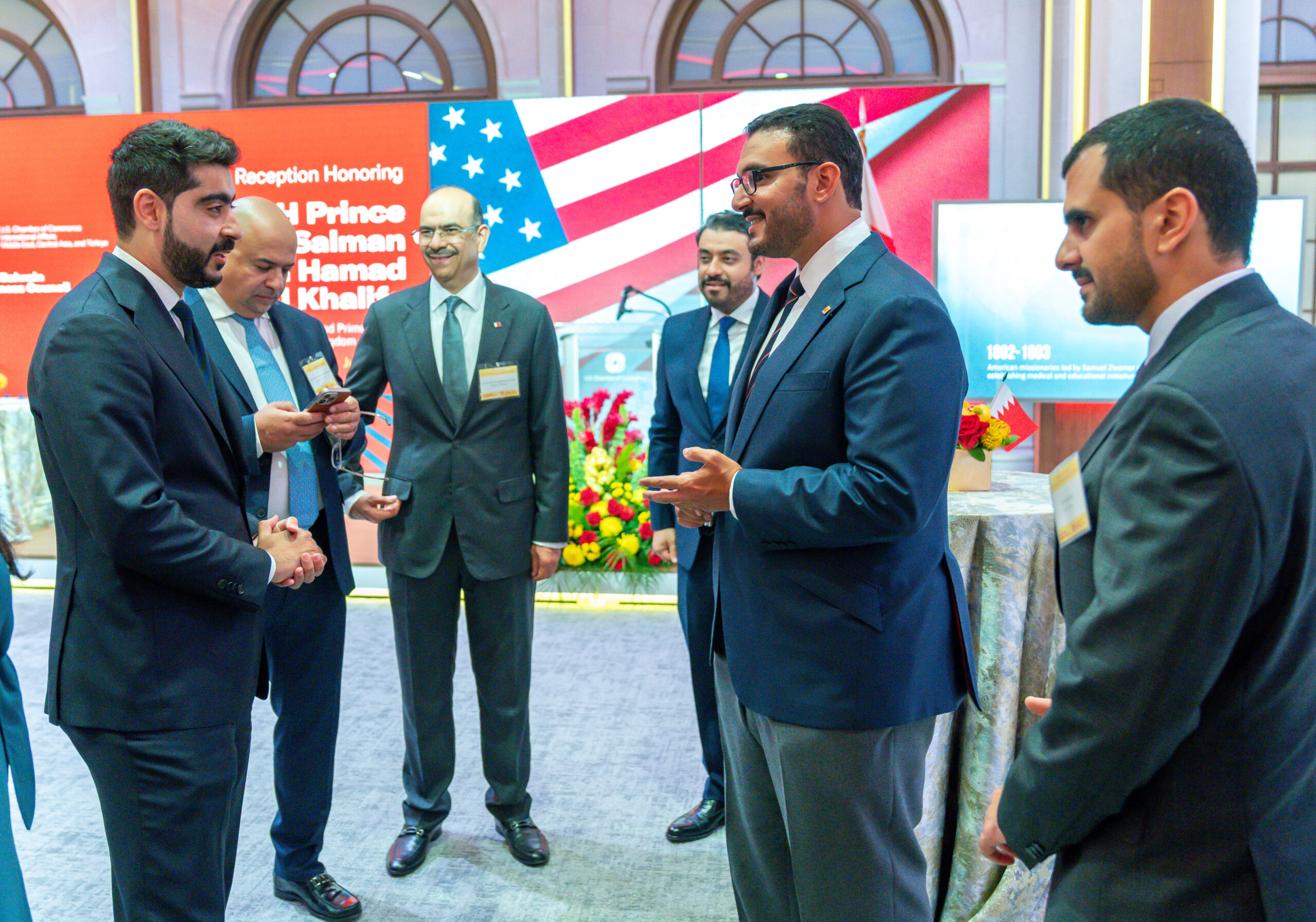 16 يوليو 2025 في إطار الزيارة الرسمية التي يقوم بها سموه إلى أمريكا .. سمو ولي العهد رئيس مجلس الوزراء يحضر حفل الاستقبال الذي نظمته غرفة التجارة الأمريكية لكبرى الشركات البحرينية والأمريكية التي سيتم الإعلان عن التعاون فيما بينها خلال زيارة سموه لأمريكا