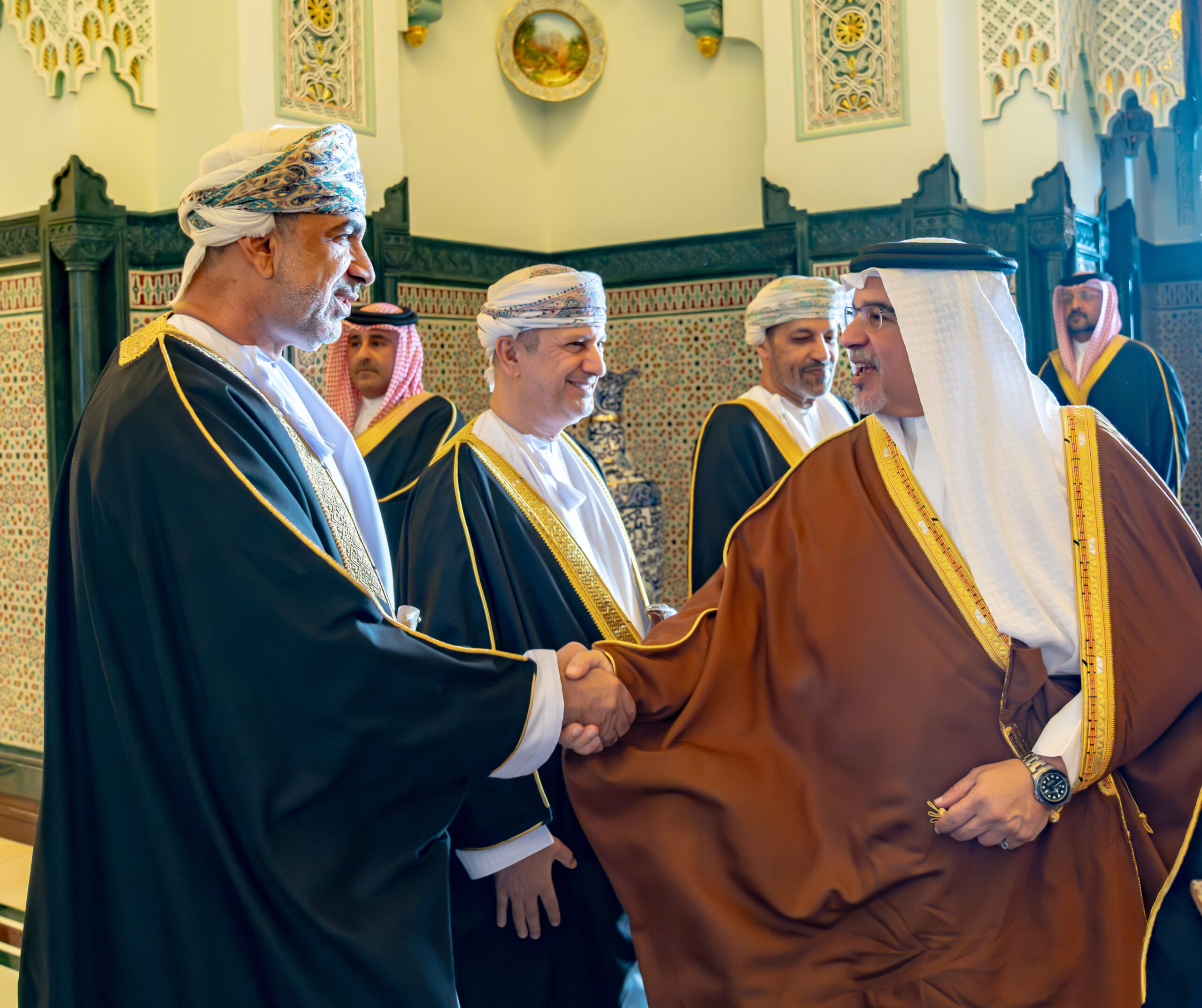 15 فبراير 2026 سمو ولي العهد رئيس مجلس الوزراء يلتقي صاحب الجلالة السلطان هيثم بن طارق سلطان عمان في إطار الزيارة الأخوية التي يقوم بها سموه إلى سلطنة عمان