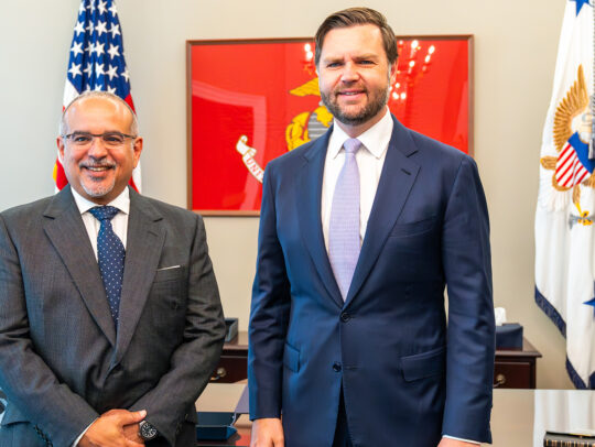 تفاصيل الخبرسمو ولي العهد رئيس مجلس الوزراء يلتقي معالي السيد جيمس ديفيد فانس نائب رئيس الولايات المتحدة الأمريكية