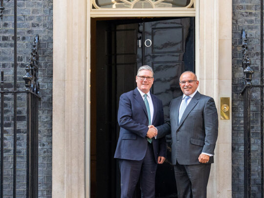 أكد صاحب السمو الملكي الأمير سلمان بن حمد آل خليفة ولي العهد رئيس مجلس الوزراء أن العلاقات التاريخية التي تجمع مملكة البحرين والمملكة المتحدة الصديقة تعزّزها شراكةٌ استراتيجيةٌ متميّزة واتفاقيات مشتركة تتسم بالتطور والنمو المستمر على كافة الأصعدة، أسهمت بالأخذ بها نحو نطاقاتٍ أرحب من التكامل والتعاون المشترك، مشيرًا سموه إلى ما تحظى به العلاقات […]