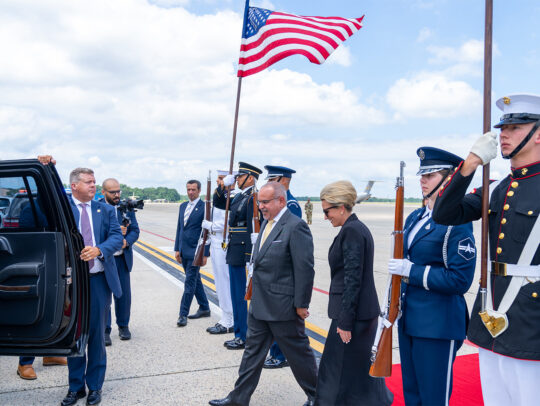 وصل صاحب السمو الملكي الأمير سلمان بن حمد آل خليفة ولي العهد رئيس مجلس الوزراء بحفظ الله ورعايته إلى الولايات المتحدة الأمريكية الصديقة في زيارة رسمية يلتقي خلالها سموه فخامة الرئيس دونالد ترامب رئيس الولايات المتحدة الأمريكية الصديقة، وعددًا من كبار المسؤولين بالإدارة الأمريكية، لبحث تعزيز العلاقات الثنائية بين البلدين الصديقين، وسبل تطوير التعاون الثنائي […]