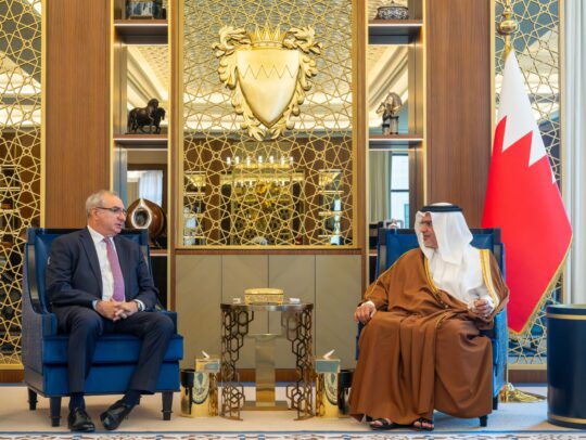 استقبل صاحب السمو الملكي الأمير سلمان بن حمد آل خليفة ولي العهد رئيس مجلس الوزراء بقصر القضيبية اليوم، بحضور معالي الشيخ سلمان بن خليفة آل خليفة وزير المالية والاقتصاد الوطني، وسعادة السيد حمد بن فيصل المالكي وزير شؤون مجلس الوزراء، سعادة السيد آيتان نائي سفير دولة إسرائيل لدى مملكة البحرين، وذلك بمناسبة انتهاء فترة عمله […]