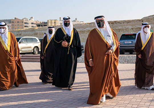 قام صاحب السمو الملكي الأمير سلمان بن حمد آل خليفة ولي العهد رئيس الوزراء حفظه الله صباح اليوم يرافقه كل من سمو الشيخ محمد بن مبارك آل خليفة نائب رئيس الوزراء ومعالي السيدة فوزية بنت عبدالله زينل رئيسة مجلس النواب ومعالي السيد علي بن صالح الصالح رئيس مجلس الشورى وأصحاب المعالي والسعادة نواب رئيس الوزراء والوزراء بزيارة إلى قاعدة الصخير الجوية حيث قدم سموه خالص التعازي وصادق المواساة إلى سمو الشيخ علي بن خليفة آل خليفة نائب رئيس الوزراء وسمو الشيخ سلمان بن خليفة آل خليفة مستشار رئيس الوزراء وأحفاد الفقيد الراحل رحمه الله داعيًا الله العلي القدير أن يتغمد فقيد الوطن صاحب السمو الملكي الأمير خليفة بن سلمان آل خليفة بواسع رحمته ويسكنه فسيح جناته.