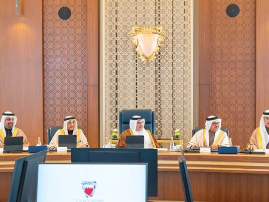 رأس صاحب السمو الملكي الأمير سلمان بن حمد آل خليفة ولي العهد رئيس مجلس الوزراء، الاجتماع الاعتيادي الأسبوعي لمجلس الوزراء الذي عقد اليوم، بقصر القضيبية.