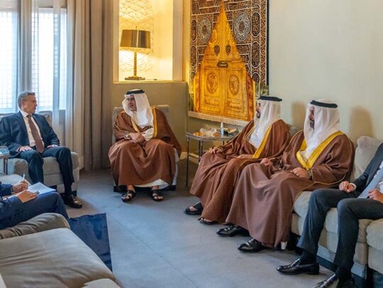 جاء ذلك لدى لقاء سموه حفظه الله اليوم في قصر الرفاع، بحضور سمو الشيخ محمد بن سلمان بن حمد آل خليفة، سعادة السفير تيرثا راج واكلي سفير نيبال لدى مملكة البحرين، حيث رحب سموه بسعادة السفير بمناسبة تعيينه سفيراً لبلاده متمنياً له التوفيق في أداء مهامه، مشيراً سموه إلى أهمية مواصلة تنمية العلاقات الثنائية التي تربط مملكة البحرين بنيبال، وتعزيز فرص التعاون المشتركة بين البلدين بما يعود بالخير والنماء على البلدين والشعبين الصديقين.