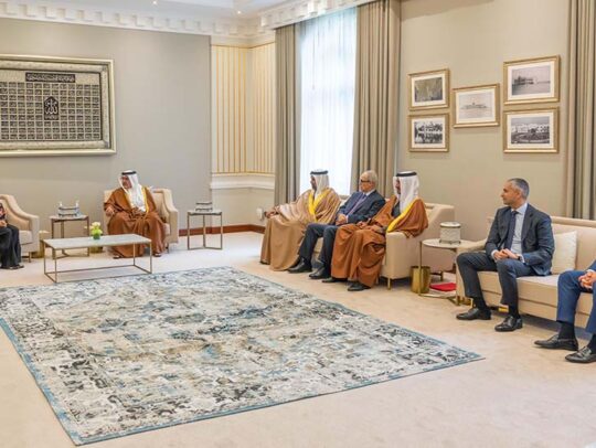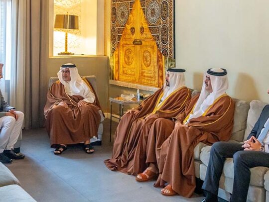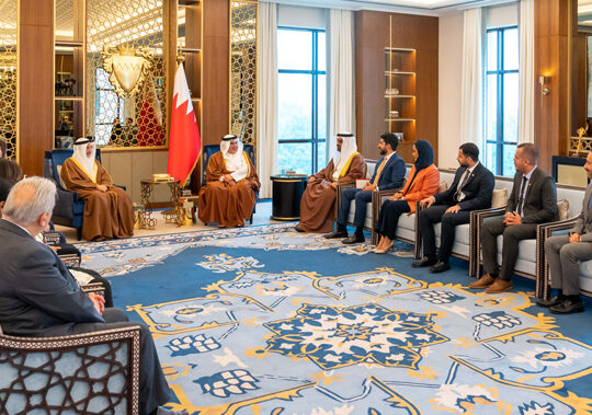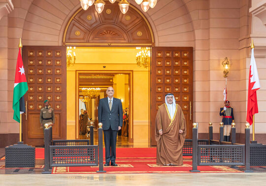استقبل صاحب السمو الملكي الأمير سلمان بن حمد آل خليفة ولي العهد رئيس مجلس الوزراء دولة الدكتور بشر هاني الخصاونة رئيس الوزراء ووزير الدفاع بالمملكة الأردنية الهاشمية الشقيقة والوفد المرافق وذلك بقصر القضيبية اليوم بحضور عدد من أصحاب السمو والمعالي والسعادة من كبار المسؤولين بالمملكة.