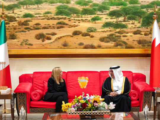 سمو ولي العهد رئيس مجلس الوزراء في مقدمة مستقبلي رئيسة وزراء الجمهورية الإيطالية لدى وصولها إلى مملكة البحرين