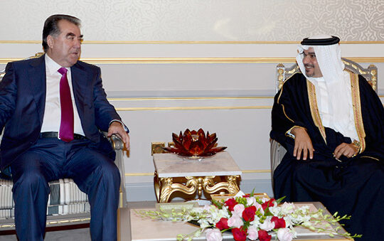 سمو ولي العهد يلتقي مع رئيس جمهورية طاجيكستان