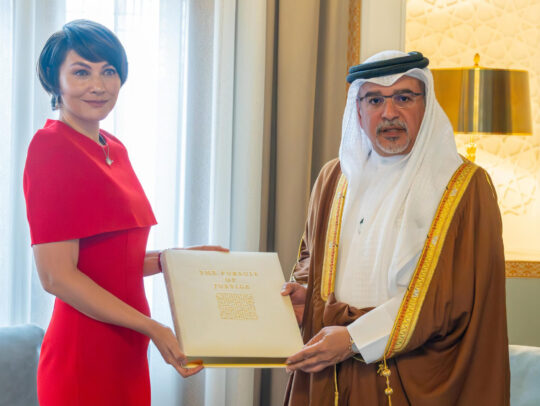 تفاصيل الخبرسمو ولي العهد رئيس مجلس الوزراء يلتقي البروفيسورة ماريكا باتراني بولسون الأمين العام لمجلس تسوية المنازعات الدولية في مملكة البحرين حيث أهدت سموه كتاب يوثق المحطّات البارزة في ترسيخ العدالة ويبرز مسيرة القانون في مملكة البحرين