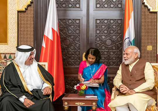 سمو ولي العهد يلتقي دولة السيد ناريندرا مودي رئيس وزراء جمهورية الهند الصديقة بمناسبة زيارته إلى مملكة البحرين