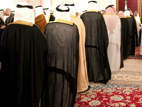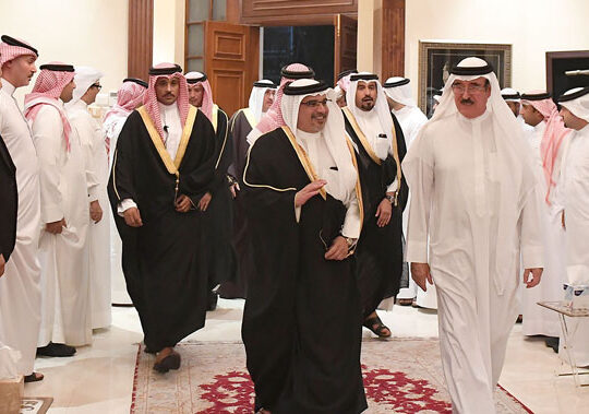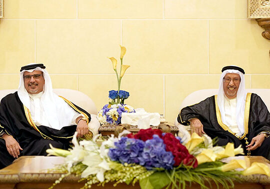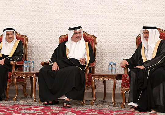 سمو ولي العهد وبحضور سمو الشيخ عيسى وسمو الشيخ محمد يستقبل المعزين بوفاة صاحبة السمو الشيخة هالة بنت دعيج