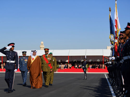 جلالة الملك المفدى ينيب سمو ولي العهد لحضور حفل تخرج دورة مرشحي الضباط 12 (سرية احمد الفاتح) بكلية عيسى العسكرية الملكية