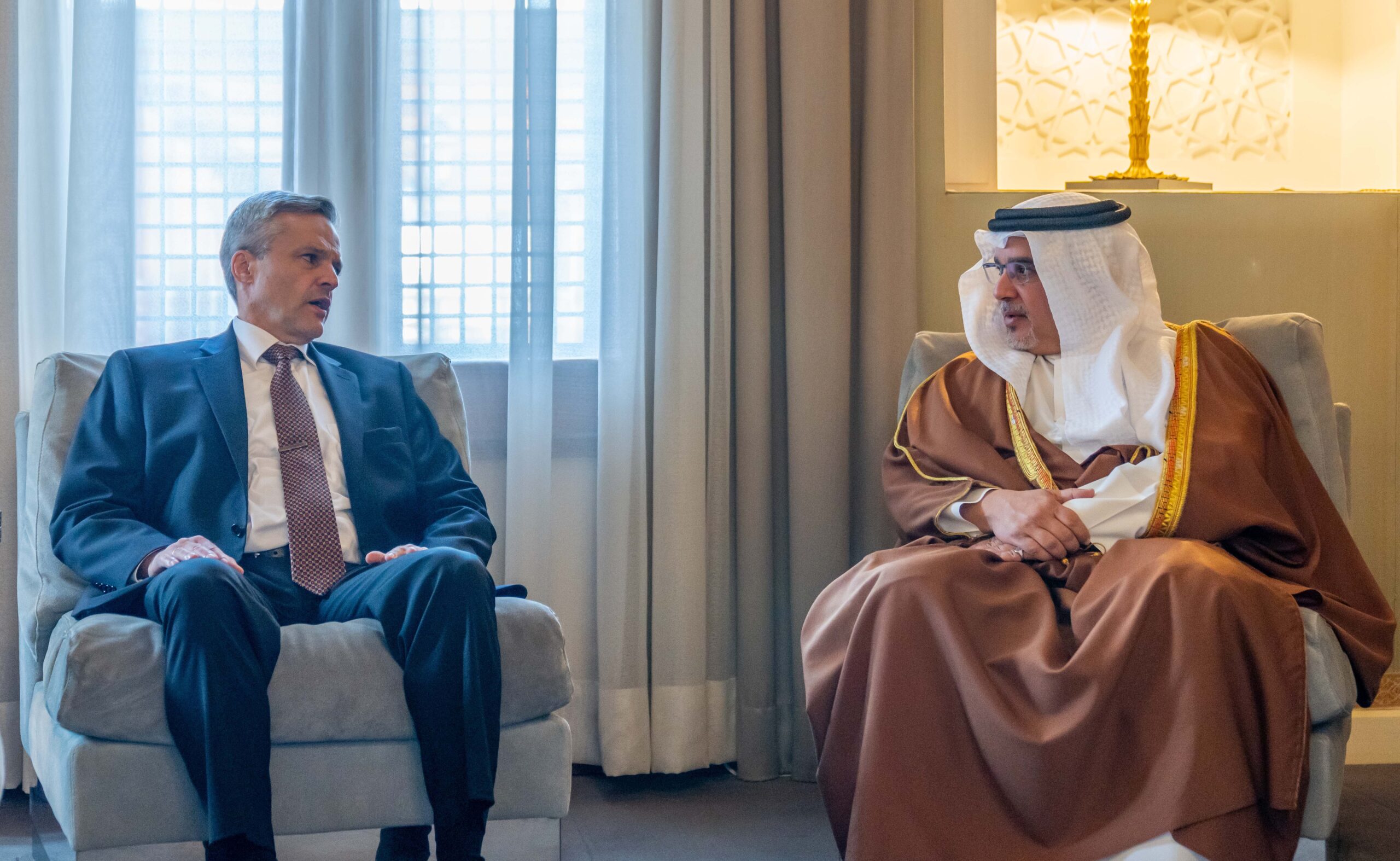 جاء ذلك لدى لقاء سموه حفظه الله في قصر الرفاع اليوم، بحضور سمو الشيخ محمد بن سلمان بن حمد آل خليفة، ومعالي الشيخ سلمان بن خليفة آل خليفة وزير المالية والاقتصاد الوطني، سعادة السيد أليكسي سكوسيريف سفير روسيا الاتحادية، حيث رحب سموه بالسفير الروسي بمناسبة تعيينه سفيراً لبلاده في مملكة البحرين، متمنياً له التوفيق والنجاح في أداء مهامه، منوهًا سموه بما وصلت إليه مسارات التعاون والتنسيق المشترك بين البلدين وأهمية مواصلة تطويرها بما يفتح المجال أمام مزيد من فرص التعاون وتعزيز المشاريع المشتركة ويعود بالخير والنماء على الجميع.