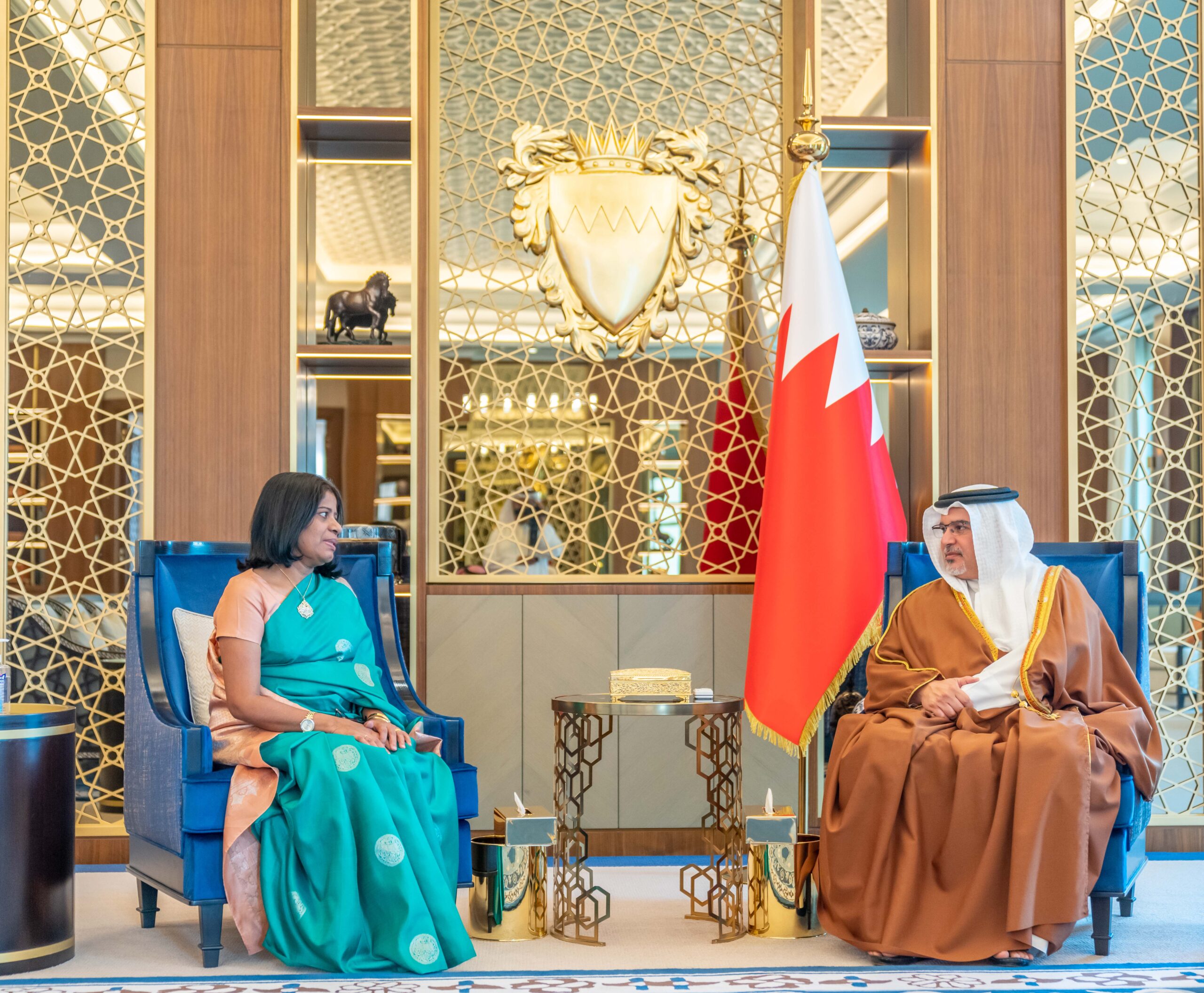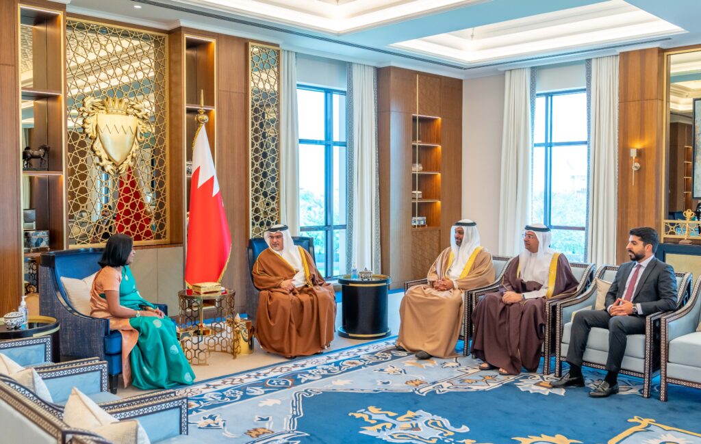 جاء ذلك لدى لقاء سموه حفظه الله اليوم بقصر القضيبية اليوم، بحضور معالي الشيخ سلمان بن خليفة آل خليفة وزير المالية والاقتصاد الوطني، سعادة السيدة براديبا بريانغاني سارام سفيرة جمهورية سريلانكا الديمقراطية الاشتراكية لدى مملكة البحرين، بمناسبة انتهاء فترة عملها كسفيره لبلادها في المملكة، حيث نوّه سموه بجهودها في تعزيز وتنمية التعاون بين البلدين الصديقين، متمنيًا لها التوفيق والنجاح في مهامها المستقبلية.