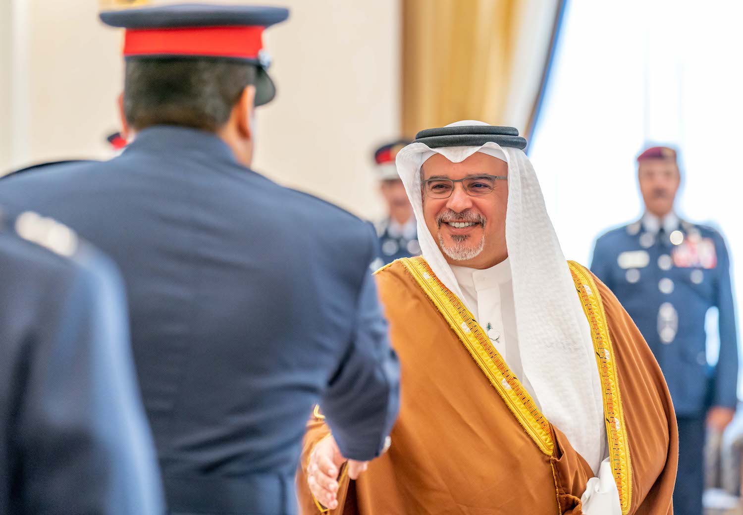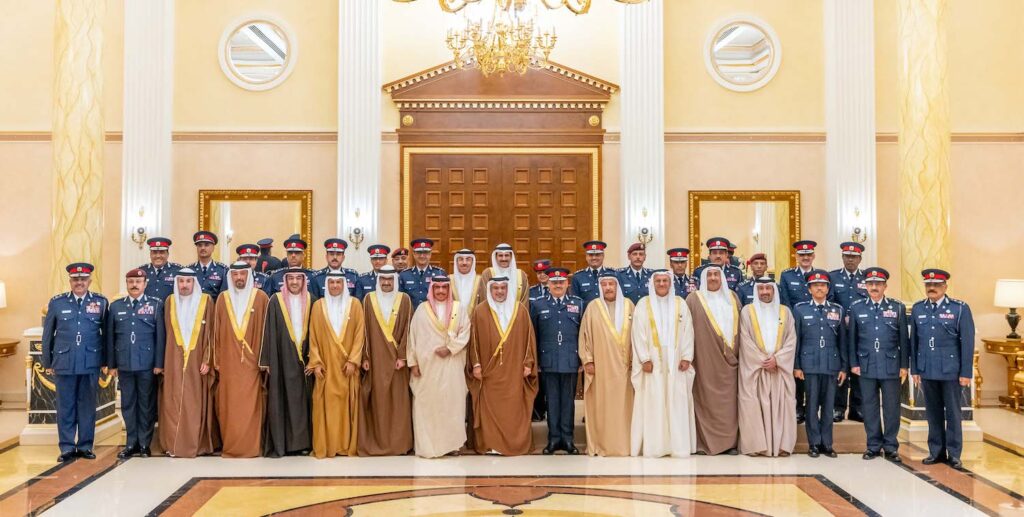 جاء ذلك لدى لقاء سموه حفظه الله في قصر القضيبية اليوم، بحضور سمو الشيخ محمد بن سلمان بن حمد آل خليفة وعدد من أصحاب المعالي من كبار المسؤولين، معالي الفريق أول الشيخ راشد بن عبدالله آل خليفة وزير الداخلية وكبار الضباط والمسؤولين بالوزارة، وذلك بمناسبة يوم الشرطة البحرينية، حيث نوه سموه بالجهود المتفانية بروح فريق البحرين لجميع منتسبي وزارة الداخلية من رجال ونساء وعزيمتهم الوطنية الصادقة من أجل مواصلة مسيرة بناء الوطن، مستذكرا سموه التضحيات التي قدمها رجال الشرطة لصون وترسيخ الأمن، معربا عن تطلعه لمواصلة المسارات التطويرية المتكاملة وتبني التقنيات الحديثة في المنظومة الأمنية كي تبقى مملكة البحرين واحة للأمن والأمان كما العهد على مر التاريخ.