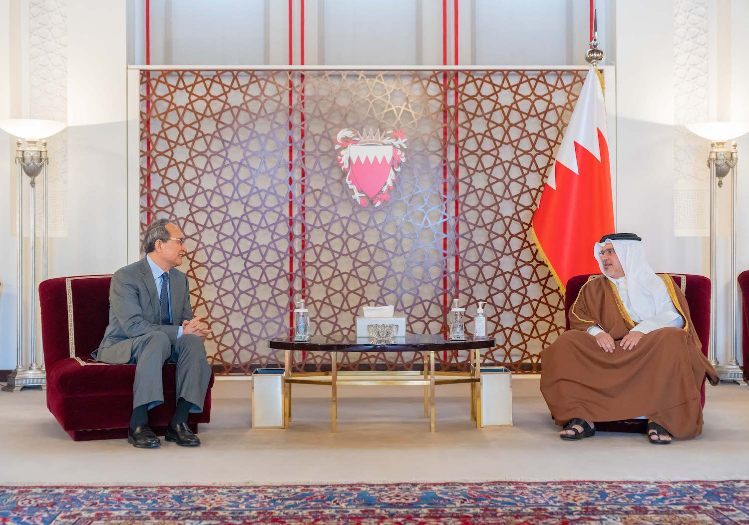 جاء ذلك لدى لقاء سموه حفظه الله بقصر الرفاع اليوم، بحضور سمو الشيخ محمد بن سلمان بن حمد آل خليفة، ومعالي الشيخ سلمان بن خليفة آل خليفة وزير المالية والاقتصاد الوطني، سعادة السيد أنور حبيب الله سفير جمهورية الصين الشعبية لدى مملكة البحرين، بمناسبة انتهاء فترة عمله كسفير لبلاده في المملكة، حيث أثنى سموه على جهود السفير الصيني في توطيد العلاقات الثنائية بين البلدين الصديقين في شتى المجالات، متمنيا سموه التوفيق والنجاح لسعادة السفير في مهامه المقبلة.
