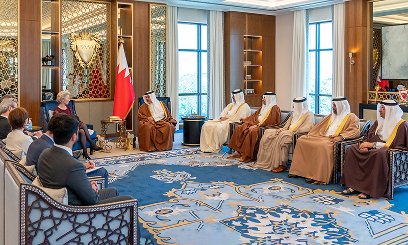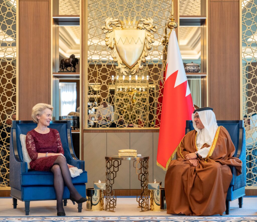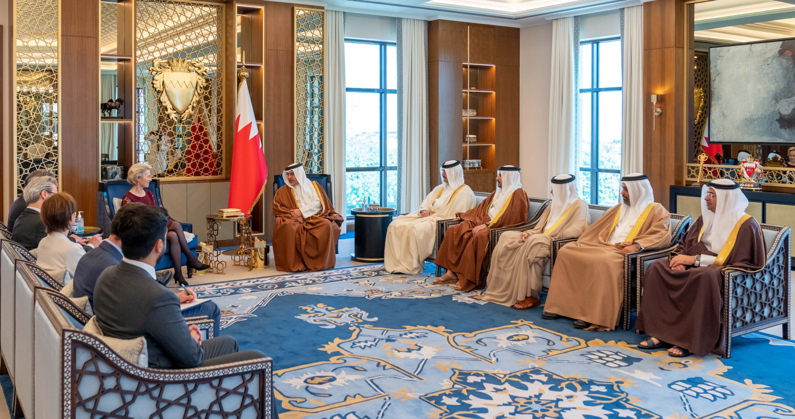 جاء ذلك لدى لقاء سموه حفظه الله في قصر القضيبية اليوم، بحضور سمو الشيخ عيسى بن سلمان بن حمد آل خليفة رئيس مجلس أمناء وقف عيسى بن سلمان التعليمي الخيري، وسمو الشيخ محمد بن سلمان بن حمد آل خليفة، وسعادة الدكتور عبداللطيف بن راشد الزياني، وزير الخارجية، ومعالي الشيخ سلمان بن خليفة آل خليفة وزير المالية والاقتصاد الوطني، سعادة السيدة أورسولا فون دير لاين رئيسة المفوضية الأوروبية، حيث نوه سموه بمستوى العلاقات القائمة بين مملكة البحرين ودول الاتحاد الأوروبي والحرص المتبادل على مواصلة البناء على ما تحقق نحو تعزيز الشراكات تحقيقا للتطلعات المنشودة.